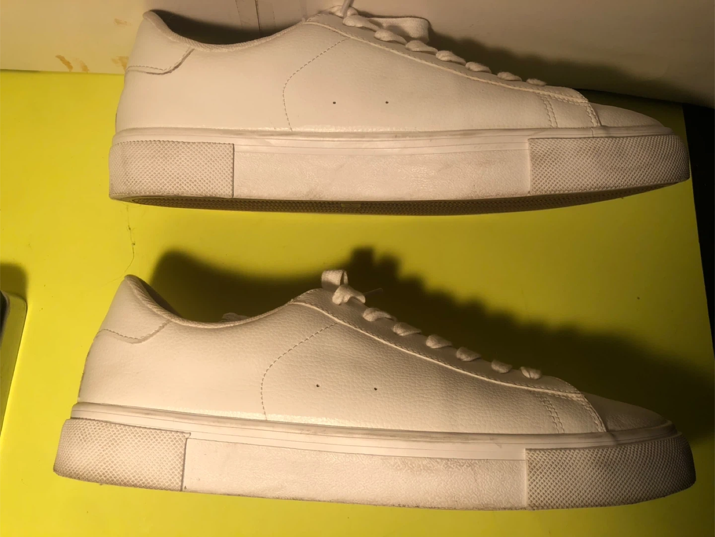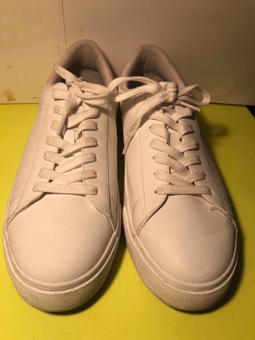 Selling a pair of H&M white sneakers. They are in good condition and a size 43, which is a US 10 , These are perfect for everyday wear!