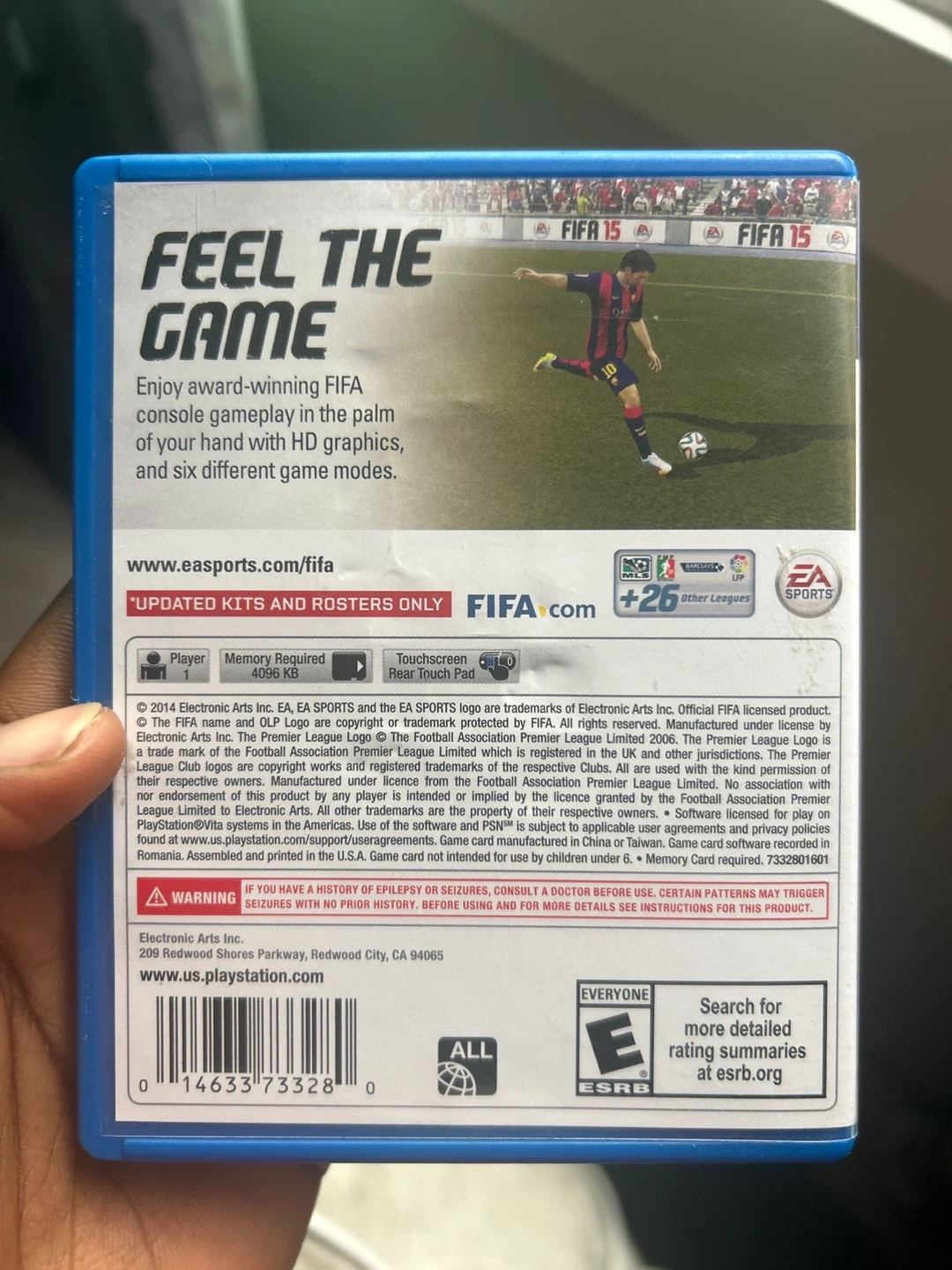 Selling FIFA 15 Legacy Edition for the PS Vita! It's in great condition and ready for a new owner to enjoy some console gameplay on the palm of your hand. Get ready to update kits and rosters!