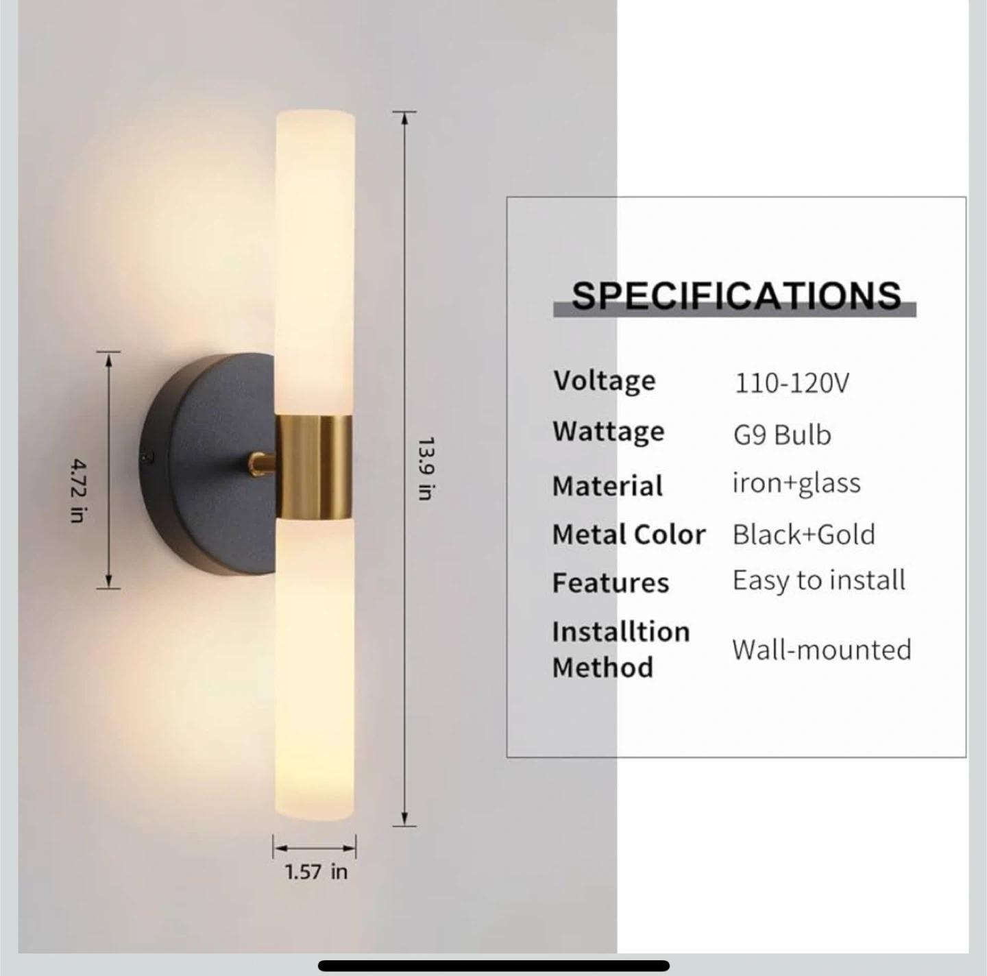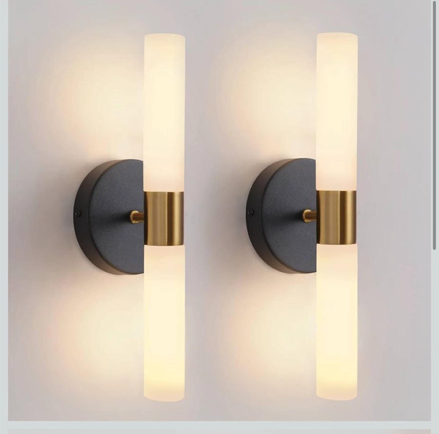 Add a touch of modern elegance to your space with these stylish wall sconces! They feature a sleek design with a black and gold finish, perfect for bathrooms, hallways, or bedrooms. These lights provide a soft, ambient glow to enhance any room's atmosphere