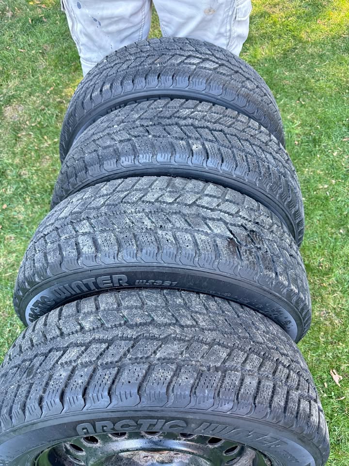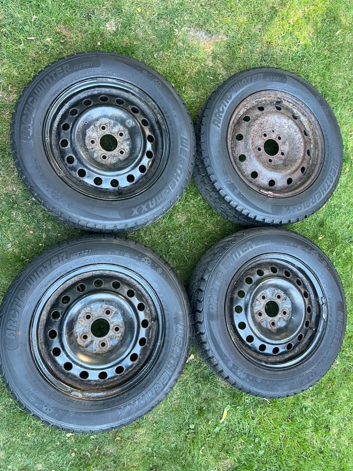 For sale are a set of Weathermaxx Artic WS321 winter tires and steel rims.