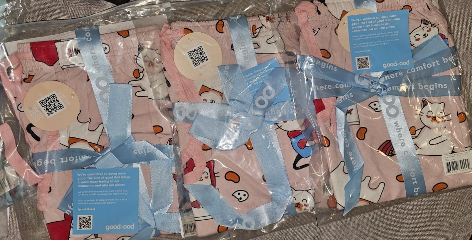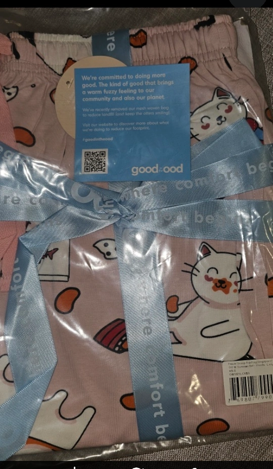 Brand new Good oOod pajama set, still in the original packaging! The set features a cute pink cat pattern. Perfect for cozy nights and lounging around the house. Get comfy with this adorable set! size is Small