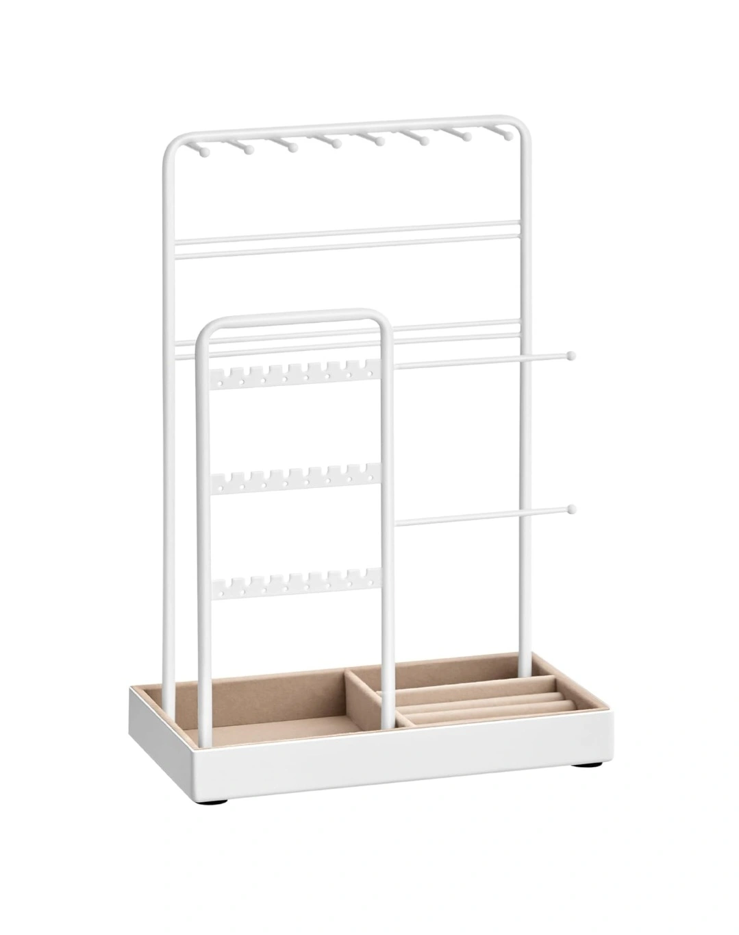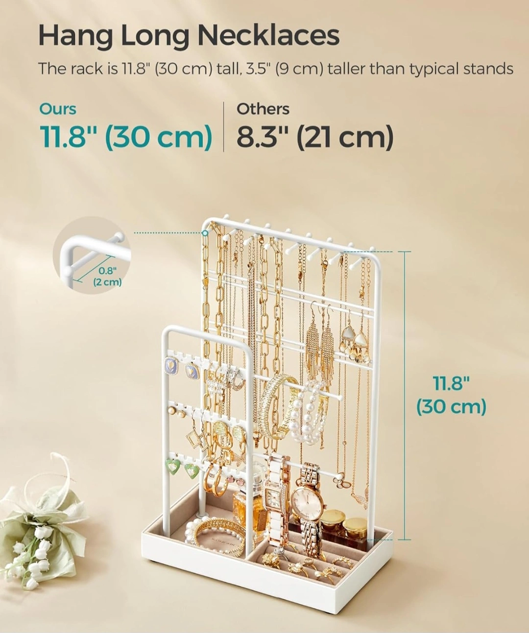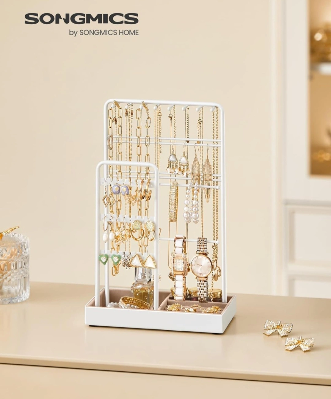 SONGMICS Jewelry Holder, Jewelry Organizer, Jewelry Display Stand with Metal Frame, Velvet Tray, Necklace Earring Bracelet Holder, for Studs, Rings, Gift Idea, Matte White UJJS021W01. 772