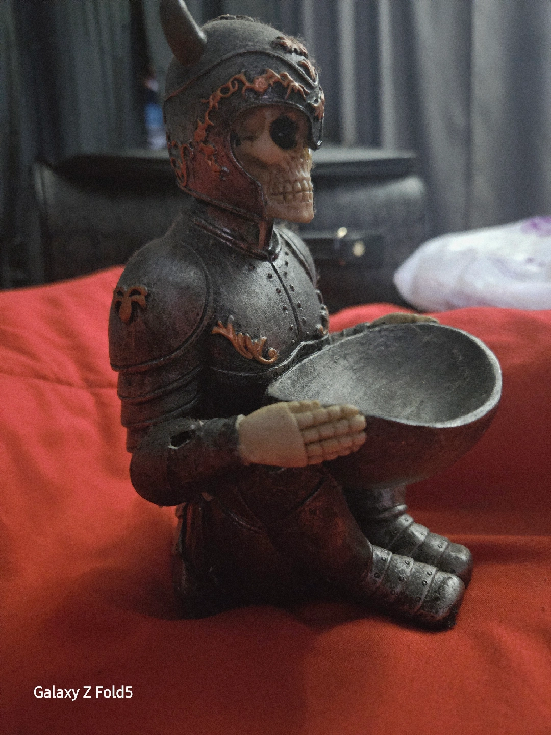Selling a unique skeleton warrior statue. It's a cool piece for decoration! The right forearm has a hole in it. Still cool though.
