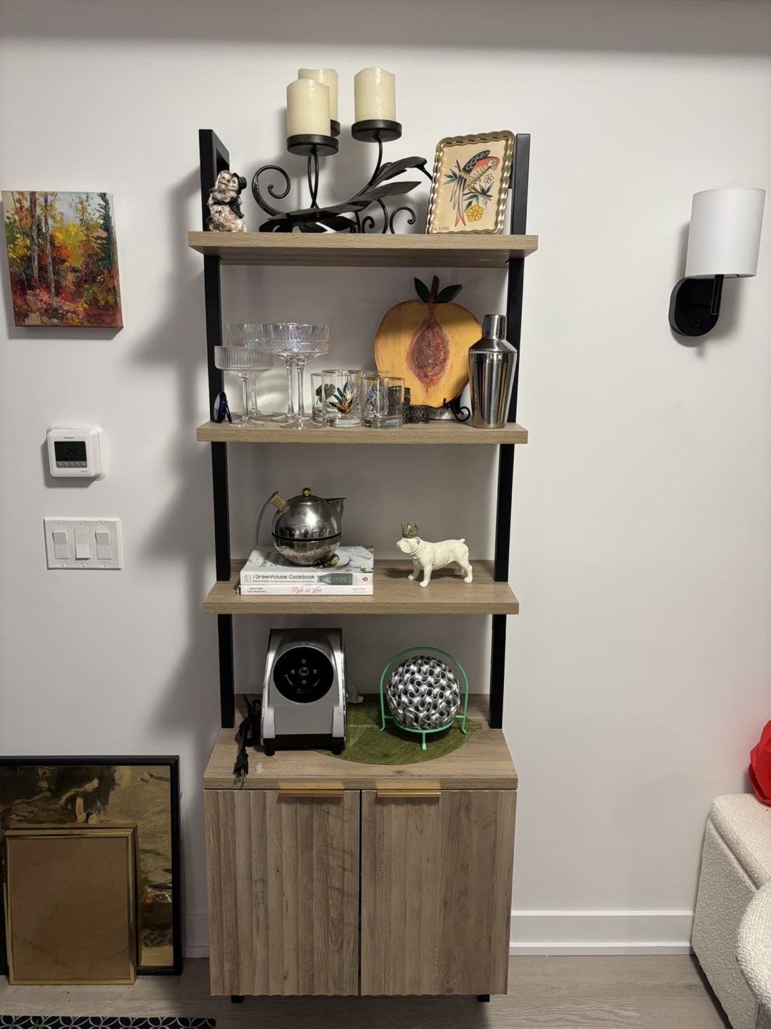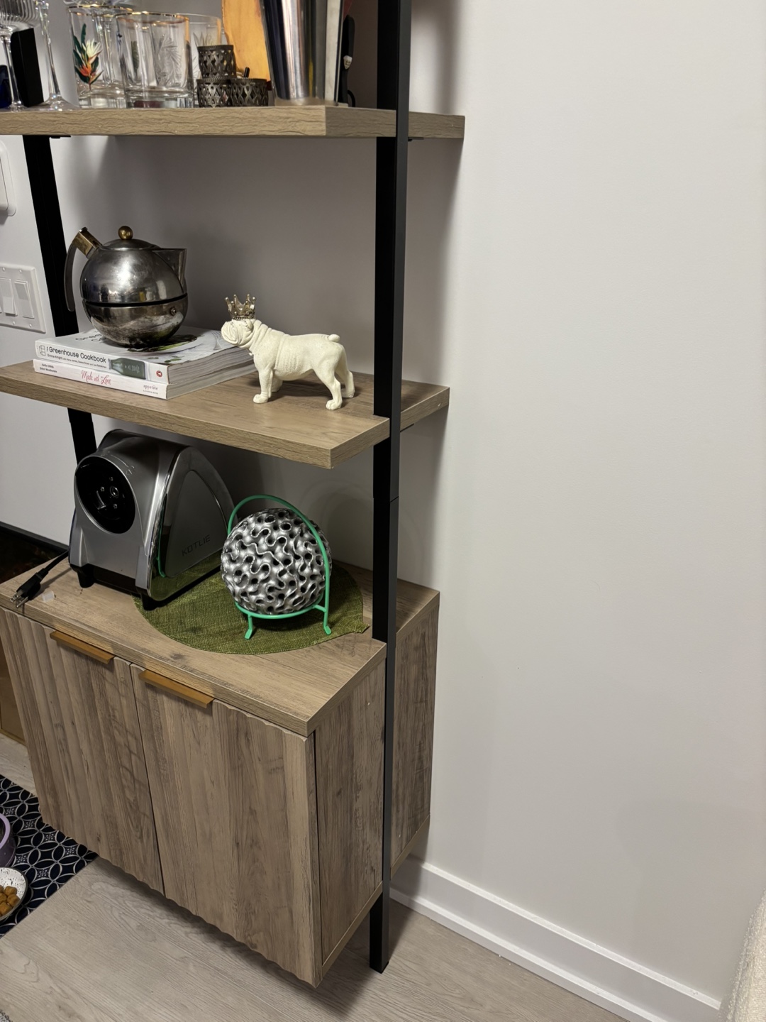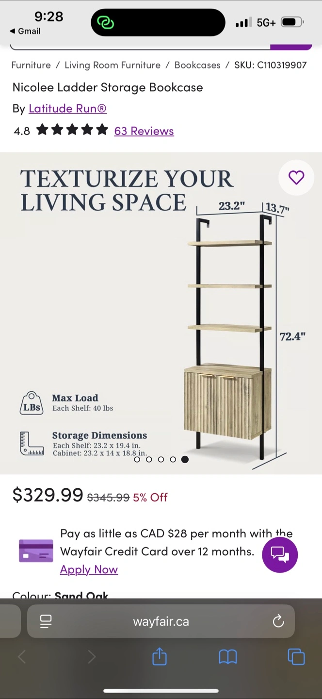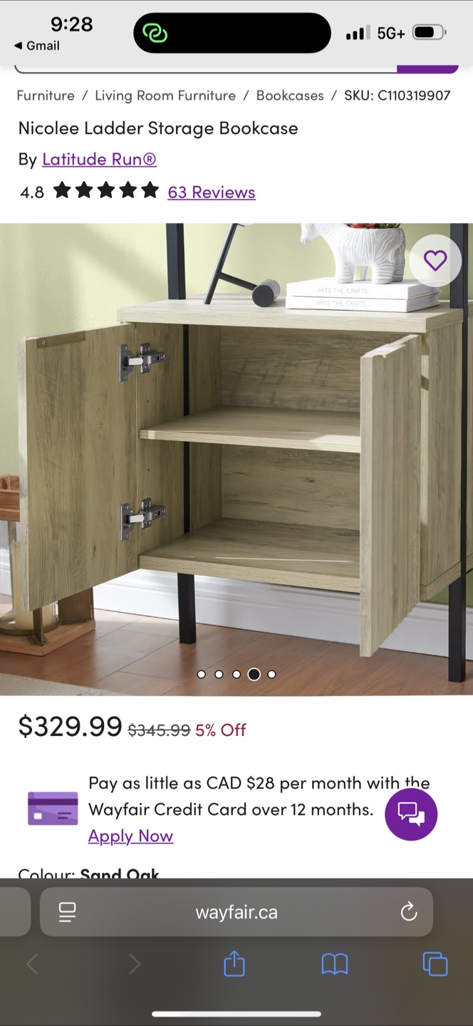 Selling a Latitude Run Nicolee Ladder Storage Bookcase in Sand Oak colour. It has a cabinet at the bottom for storage.