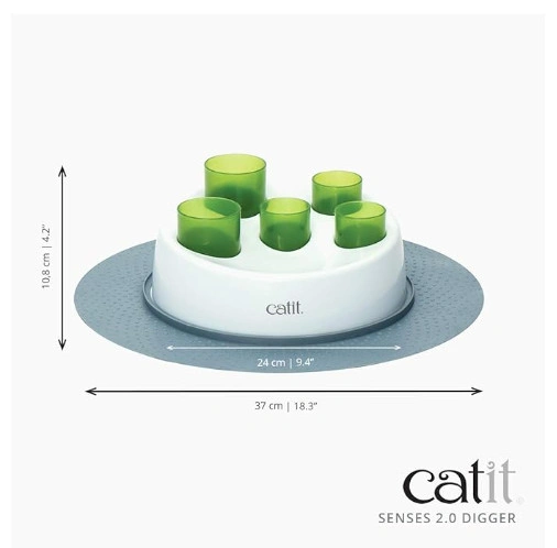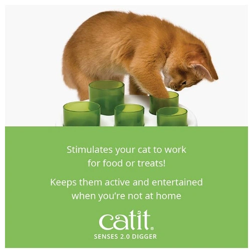 Make mealtime fun and mentally stimulating with the Catit Senses 2.0 Digger. Designed to engage your cat’s hunting instincts, this interactive feeder encourages them to dig for their food or treats, helping to slow down eating and reduce boredom when you're away. Key Features: Five green tubes of varying shapes and sizes to challenge your cat’s paws Easy-to-clean design: tubes are removable and dishwasher-safe Stable base with a rubber mat to prevent sliding Helps reduce binge eating and digestive issues Compatible with other Catit Senses 2.0 play circuits Special Offer: Get an additional $2 discount for each additional item purchased from my listing. For example, buy 2 items, get $2 off; buy 3 items, get $4 off, and so on!