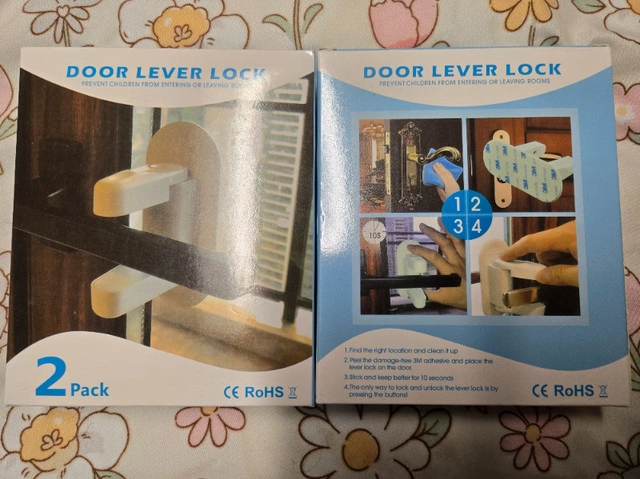 Selling door lever locks designed to prevent children and pets from opening doors and accessing restricted areas. These easy-to-install safety locks provide peace of mind by securing rooms, closets, and exit doors without damaging your door handles. Key Features: Child and Pet Safety – Effectively prevents children from opening doors and keeps pets from wandering into off-limits areas. Easy Installation – No tools required! Strong 3M adhesive attaches securely to your door, and removes cleanly when needed. One-Hand Operation – Adults can press the lock button to release while children find it difficult to unlock. Universal Fit – Works with most standard door levers, making it perfect for bedrooms, bathrooms, or exterior doors. Durable and Reliable – Made from high-quality, strong ABS plastic for long-lasting security. Perfect for parents, pet owners, or anyone needing a simple door security solution! Price: $3 per pack (Includes two locks) Special Offer: Get an additional $2 discount for each additional item purchased from my listing. For example, buy 2 packs, get $2 off; buy 3 packs, get $4 off, and so on! Condition: New