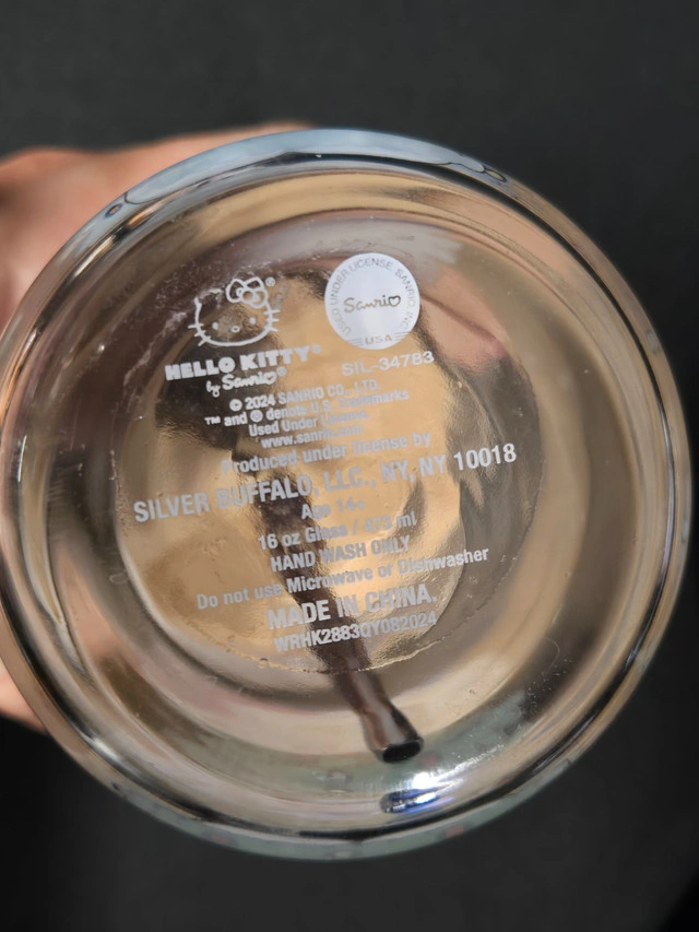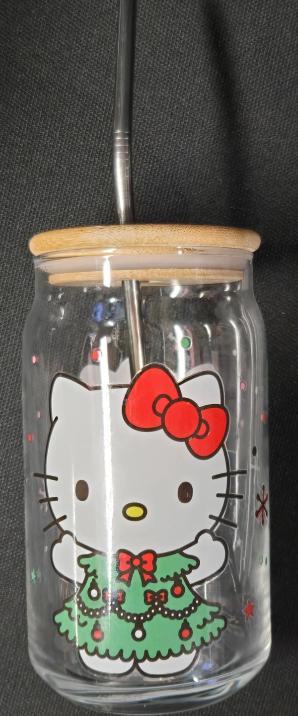 This is a licensed Hello Kitty glass tumbler featuring a festive holiday design with Hello Kitty holding a Christmas tree. It includes a reusable bamboo lid with a silicone seal and a stainless-steel straw, making it ideal for eco-conscious fans of Sanrio. Key Features: 16 oz (473 ml) capacity Licensed Hello Kitty design by Sanrio Durable glass material Reusable bamboo lid with silicone insert Stainless steel straw Not microwave or dishwasher safe (hand wash only) Produced by Silver Buffalo, LLC (Model: MKY10018) Special Offer: Get an additional $2 discount for each additional item purchased from my listing. For example, buy 2 items, get $2 off; buy 3 items, get $4 off, and so on!