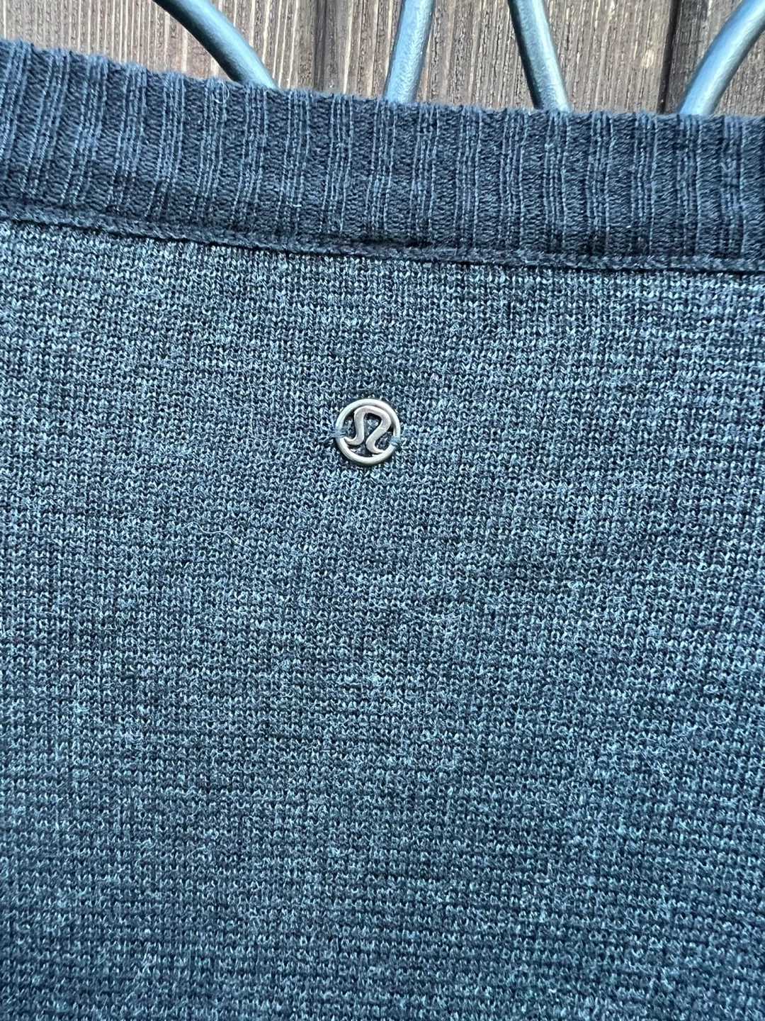 Cozy Lululemon sweater in a dark grey/blue color! It features thumb holes and a stylish design. Reversible. Perfect for layering or wearing on its own
