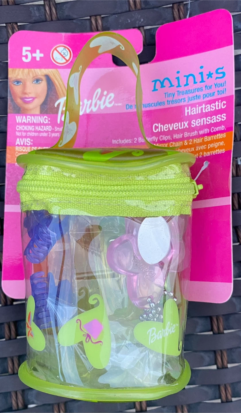 This Barbie Mini*s Hairstatic set is brand new and ready for a new home! It's a tiny treasures set for you. Includes 2 butterfly clips, a hair brush with comb, a hair chain, and 2 hair barrettes. Recommended for ages 5+