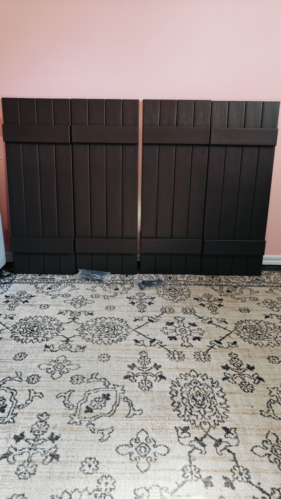 Selling a pair of B & B Shutters in brown. They are 15" x 39". ( 2 pairs - 4 PC's)
