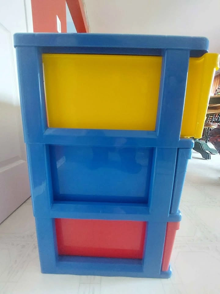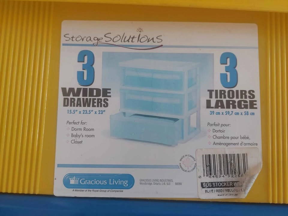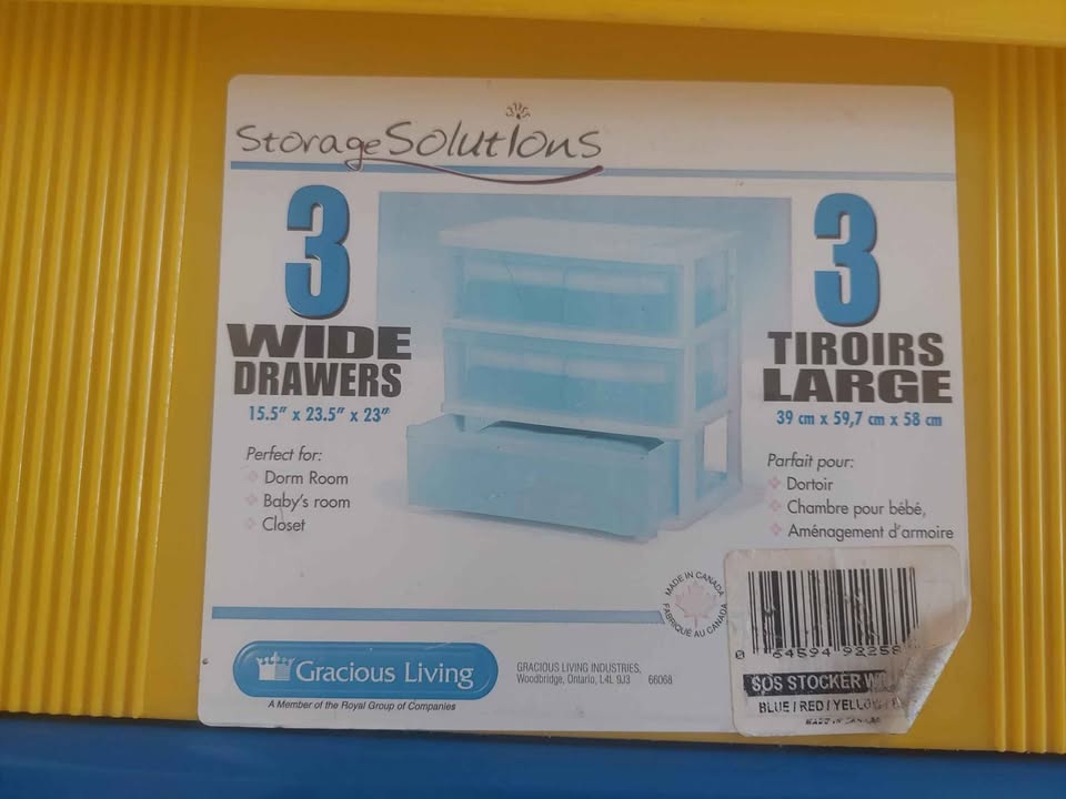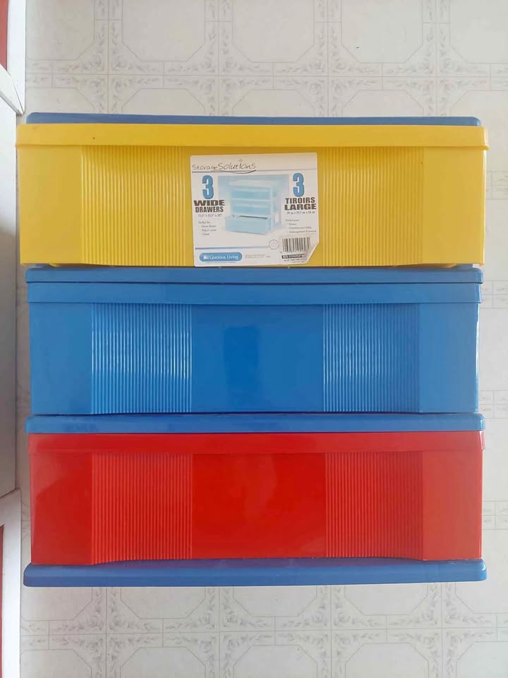 Wide drawers, good condition. Top drawer sticks out slightly. No wheels.