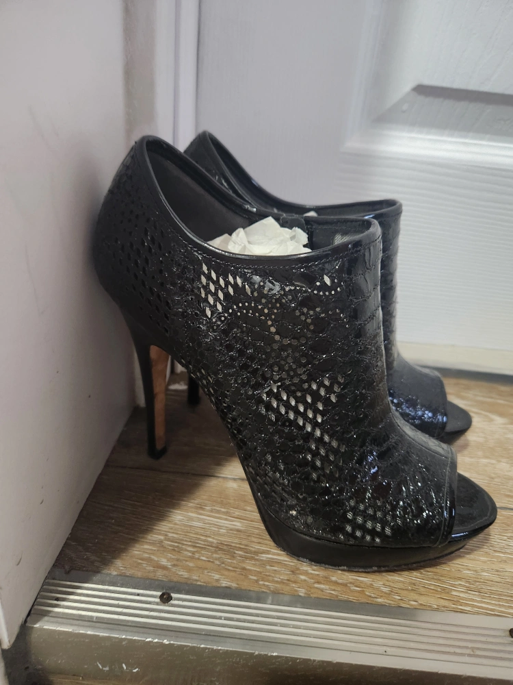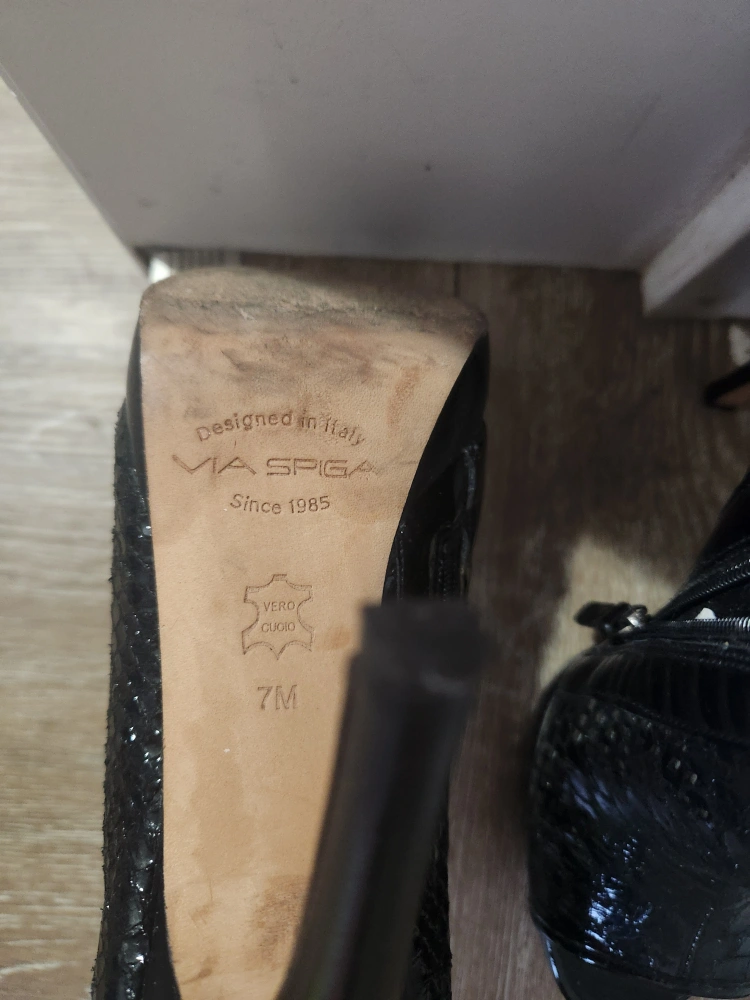 These are Via Spiga black heels, designed in Italy since 1985. They are a size 7M and have a stylish, unique look. Perfect for adding a touch of elegance to any outfit! Well taken care of.