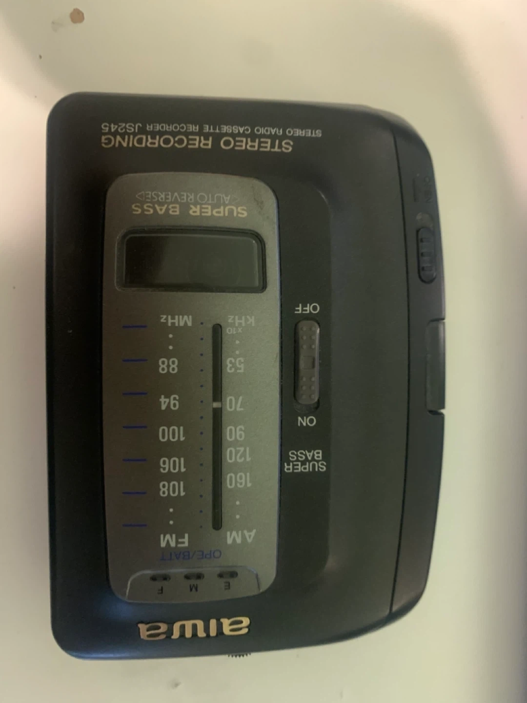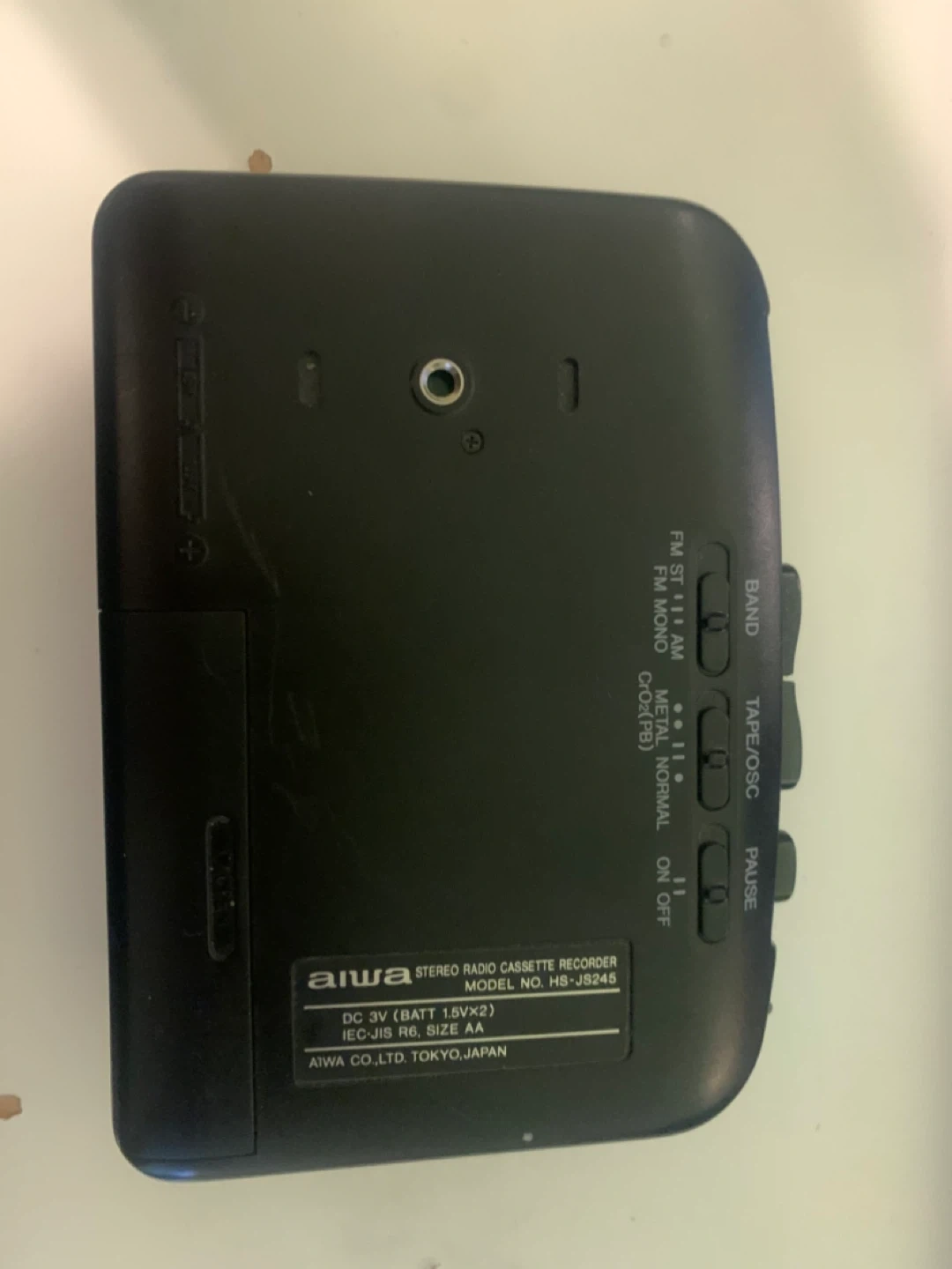 Selling an Aiwa stereo radio cassette recorder, model HS-JS245. It features super bass and auto reverse functionality. It supports FM and AM radio bands. Also has headphone and microphone jacks