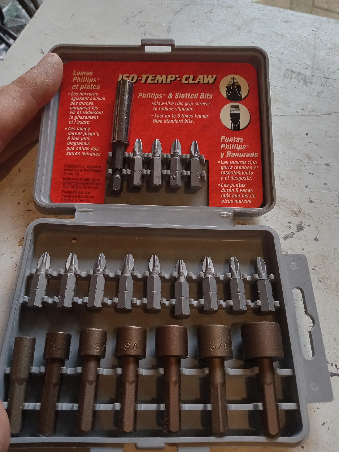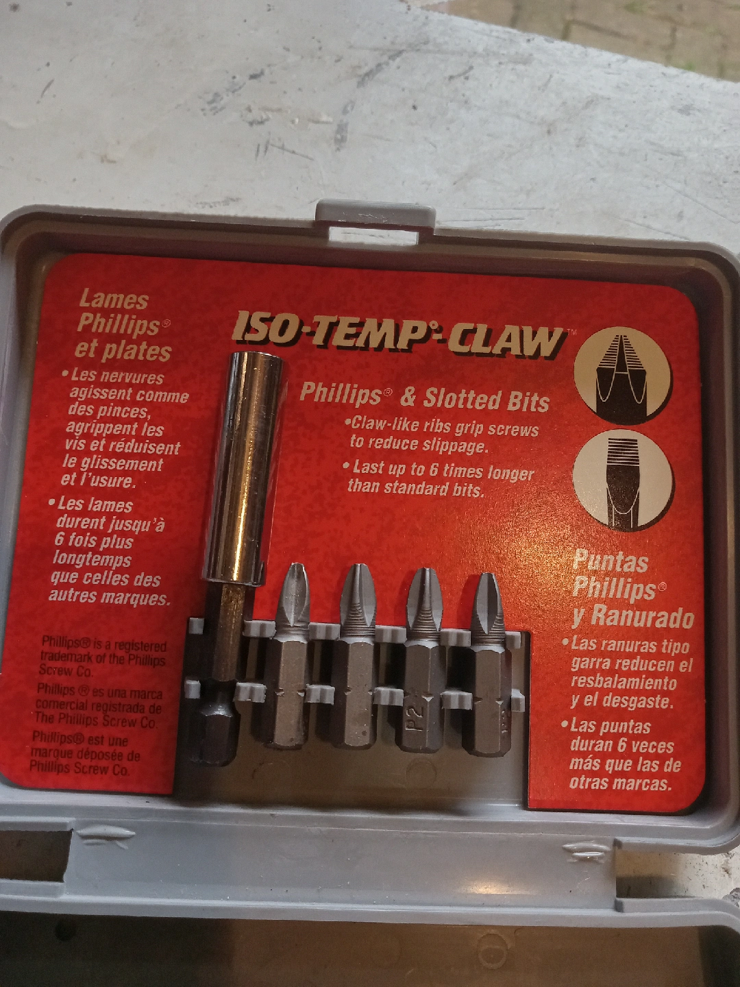 Selling a Vermont American ISO-TEMP-CLAW Phillips & Slotted Bit Set. The claw-like ribs grip screws to reduce slippage. The bits last up to 6 times longer than standard bits