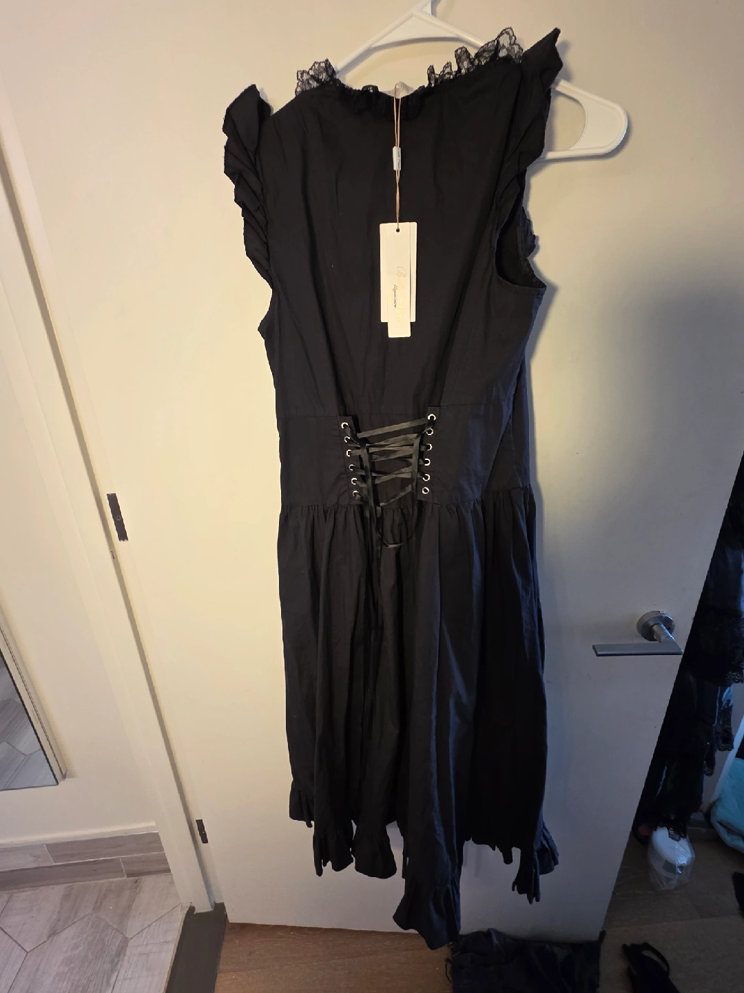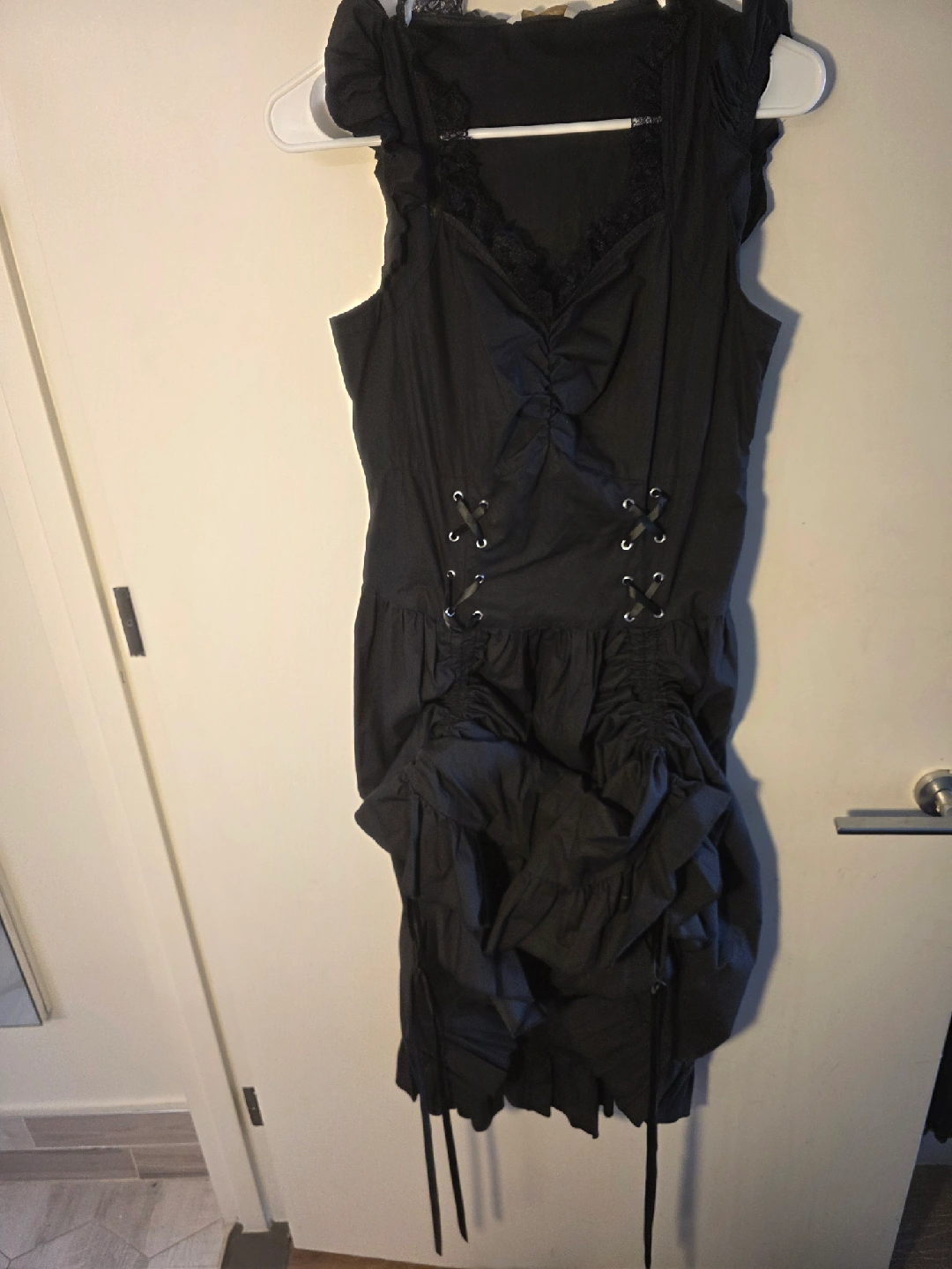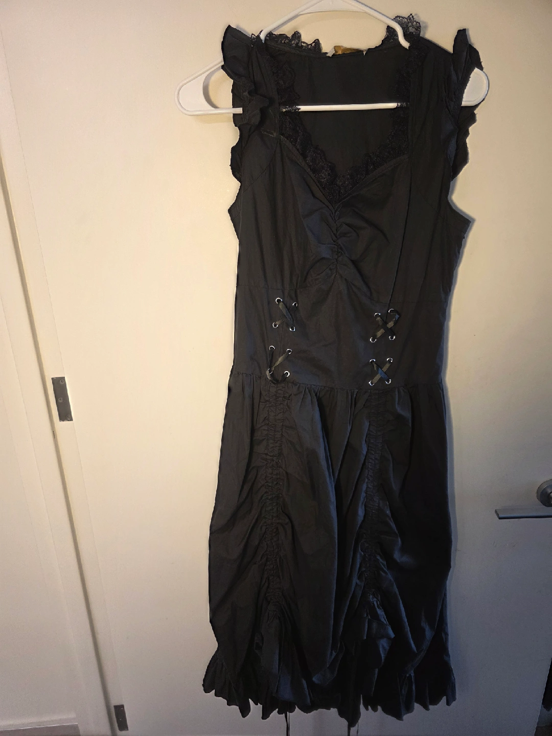 134Selling a Belle Poque black dress. It's in great condition and features elegant retro and a hourglass fit. Perfect for a night out or special occasion or for Halloween