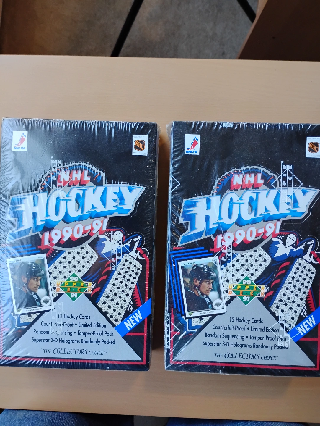 2 1990-1991 Upper Deck hockey cards,low series,factory sealed,36 packs,Wayne Gretzky on cover. $80.. 6 Bonus holograms included . Will sell boxes separately.