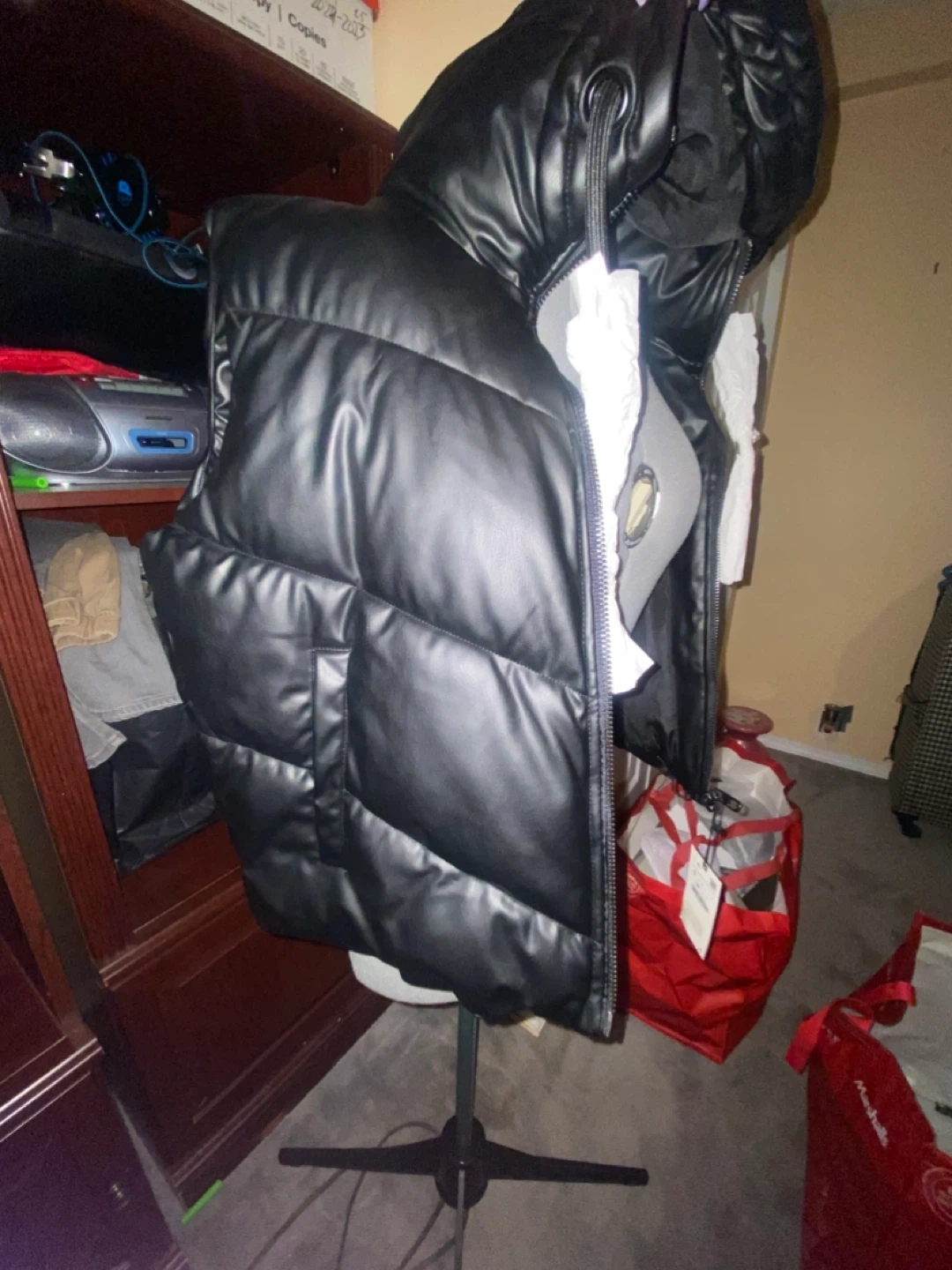 Selling a Zara black puffer vest with a hood, brand new and perfect for layering during the cooler months! The material is a sleek, shiny black, and it's super comfy