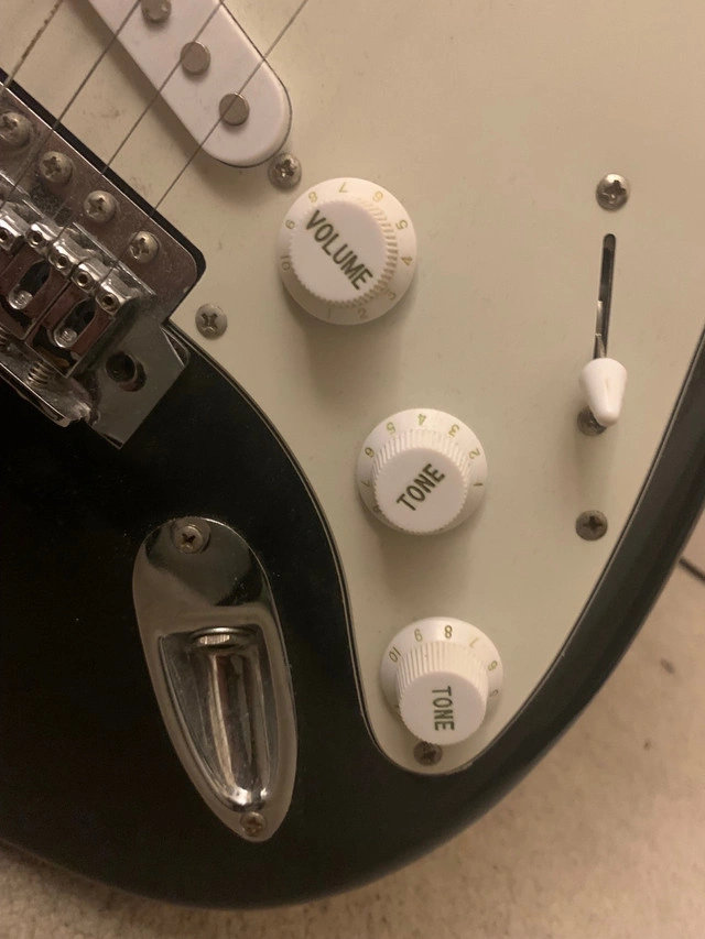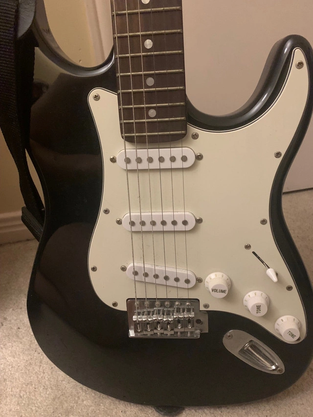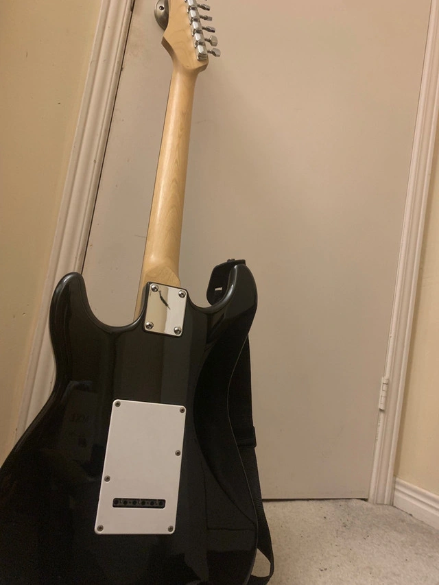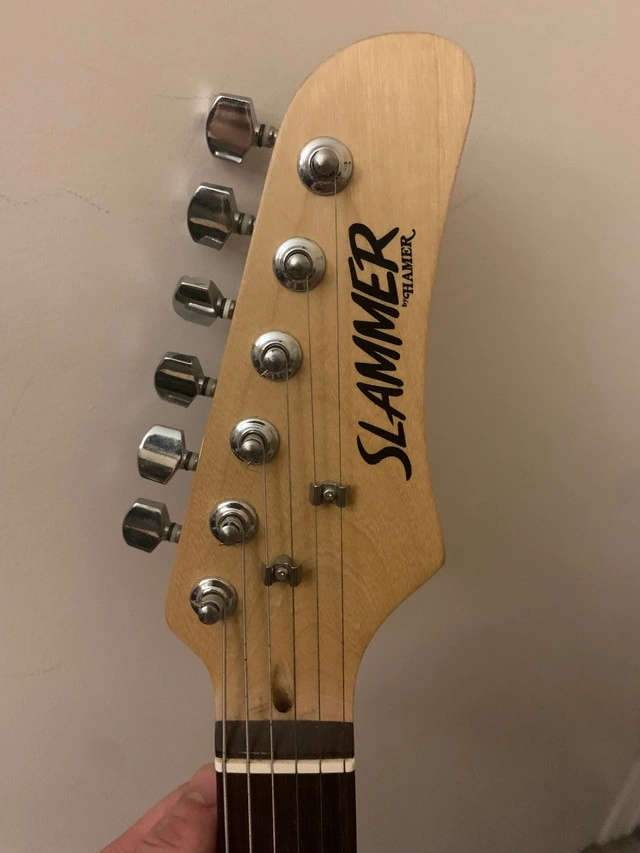 This Slammer electric guitar is ready to rock! While it has been previously enjoyed and shows light signs of use, it's in great working condition and perfect for someone looking to start their musical journey. I've taken good care of it. It has a sleek black finish and classic design, this guitar not only sounds great but looks awesome too. If you're seeing this ad, the guitar is ready and waiting. Will throw in a carry bag and accessories if you don’t lowball me.