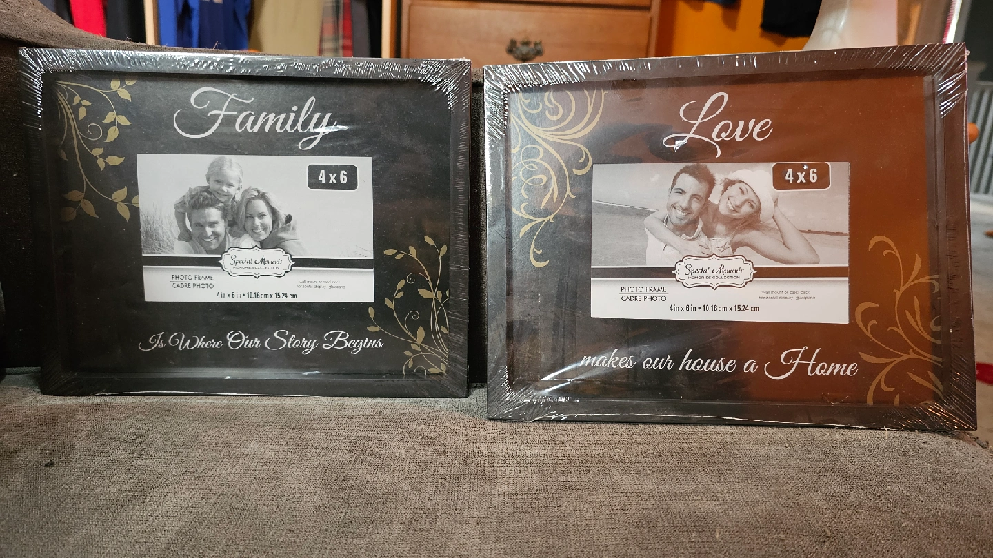 Selling a set of two brand new Special Moments picture frames, still in their original packaging! One frame has 'Family' written on it and the other says 'Love'. They both hold 4x6 inch photos and would be a lovely addition to any home