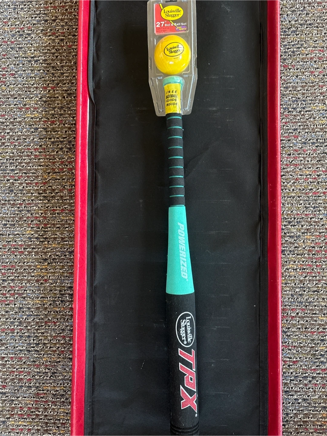 63Selling a Louisville Slugger TPX 27" Bat & Ball Set! It comes with the bat and a yellow baseball. The set also includes a free baseball guide inside. Perfect for young players learning the game!