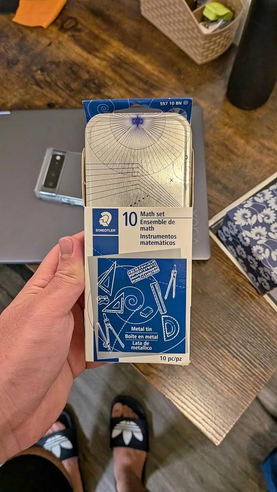 Like new Staedtler 10-piece math set in original metal tin. Barely used. Perfect for students, school, geometry, drafting, or general math work. Includes essential math instruments neatly stored in a durable metal case. Pickup near Robson Square.