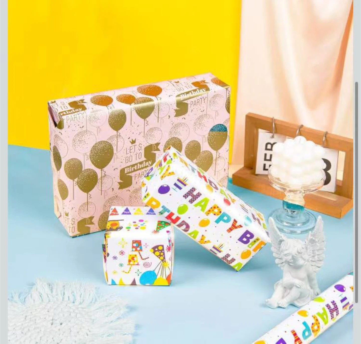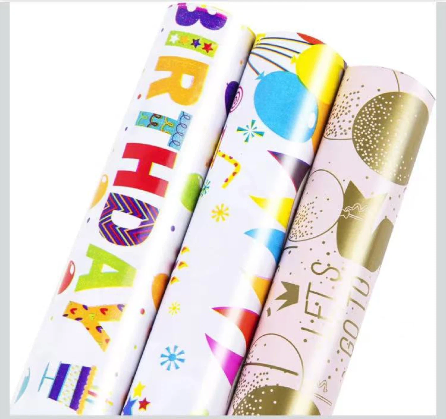 Birthday Wrapping Paper Rolls -3 LARGE ROLL-27inch*78 inch per roll Colorful Foil wrapping paper (Birthday 3 White/Colorful (014)
