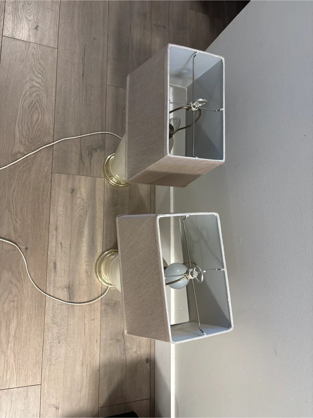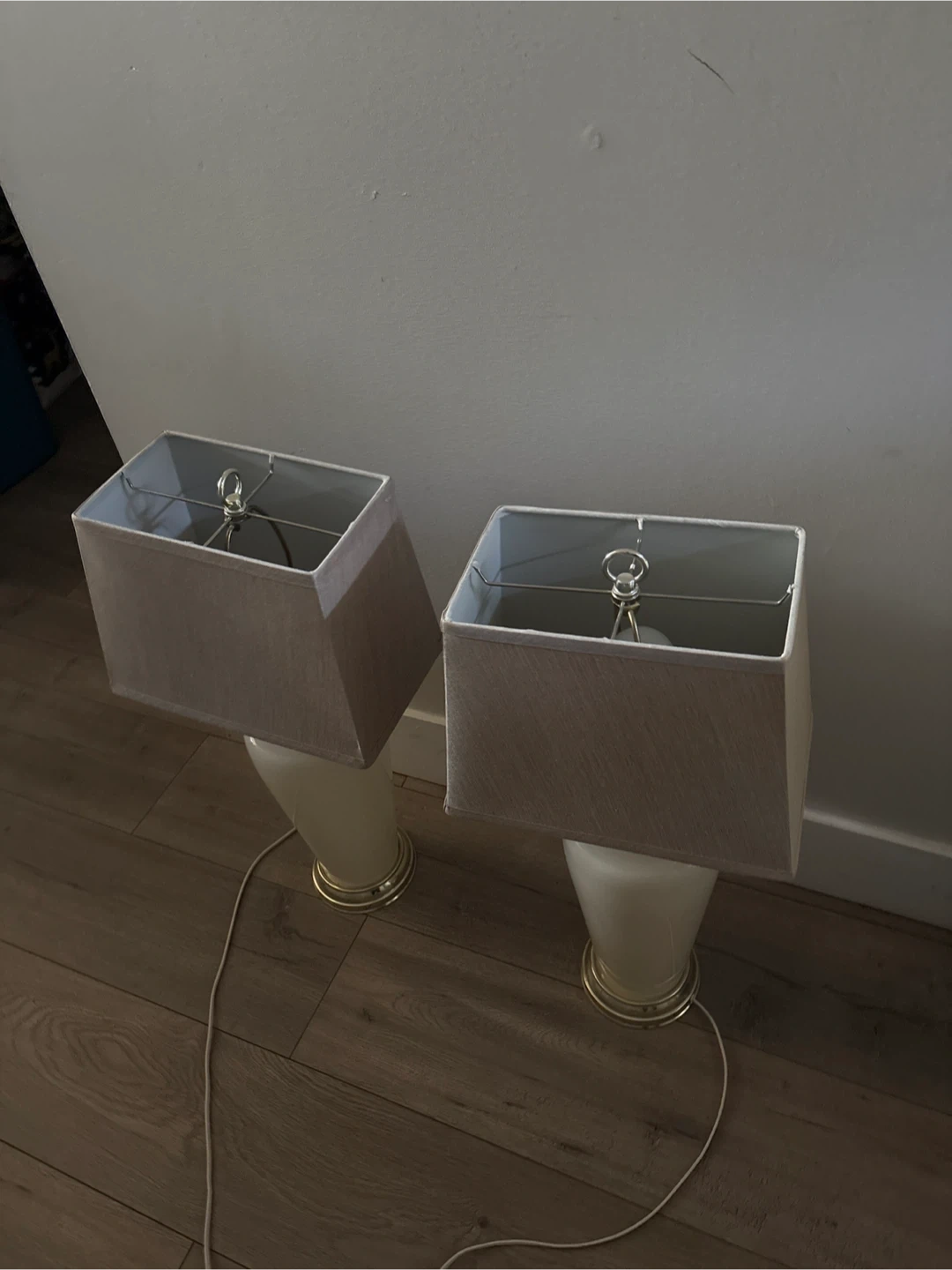 Selling a pair of lamps with rectangle shades. They're in great shape and would look lovely in any room