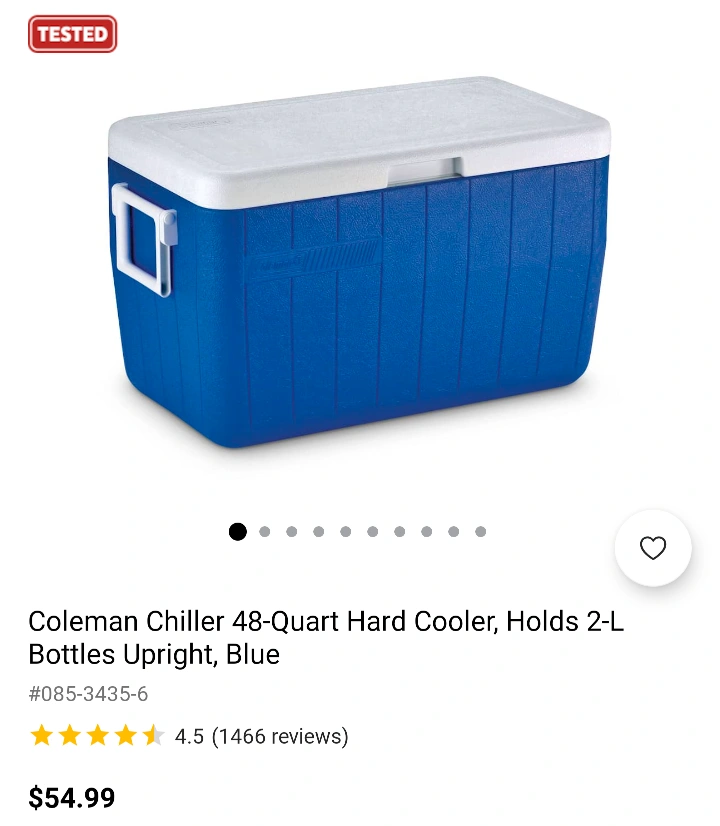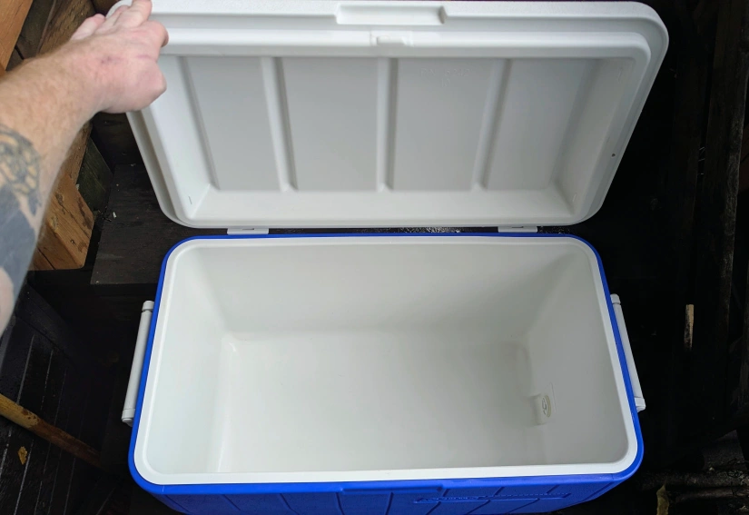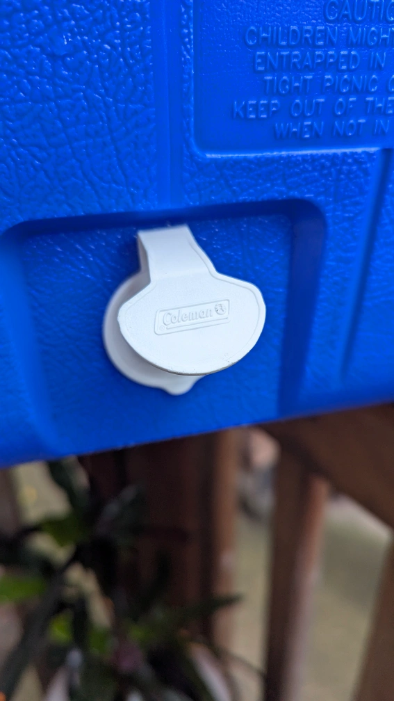 Cleaned before posting. In very good shape, small marks on lid that are only noticeable up close. Holds 2L bottles upright. Has two-way comfort handles and a spout. Upgraded and no longer need.