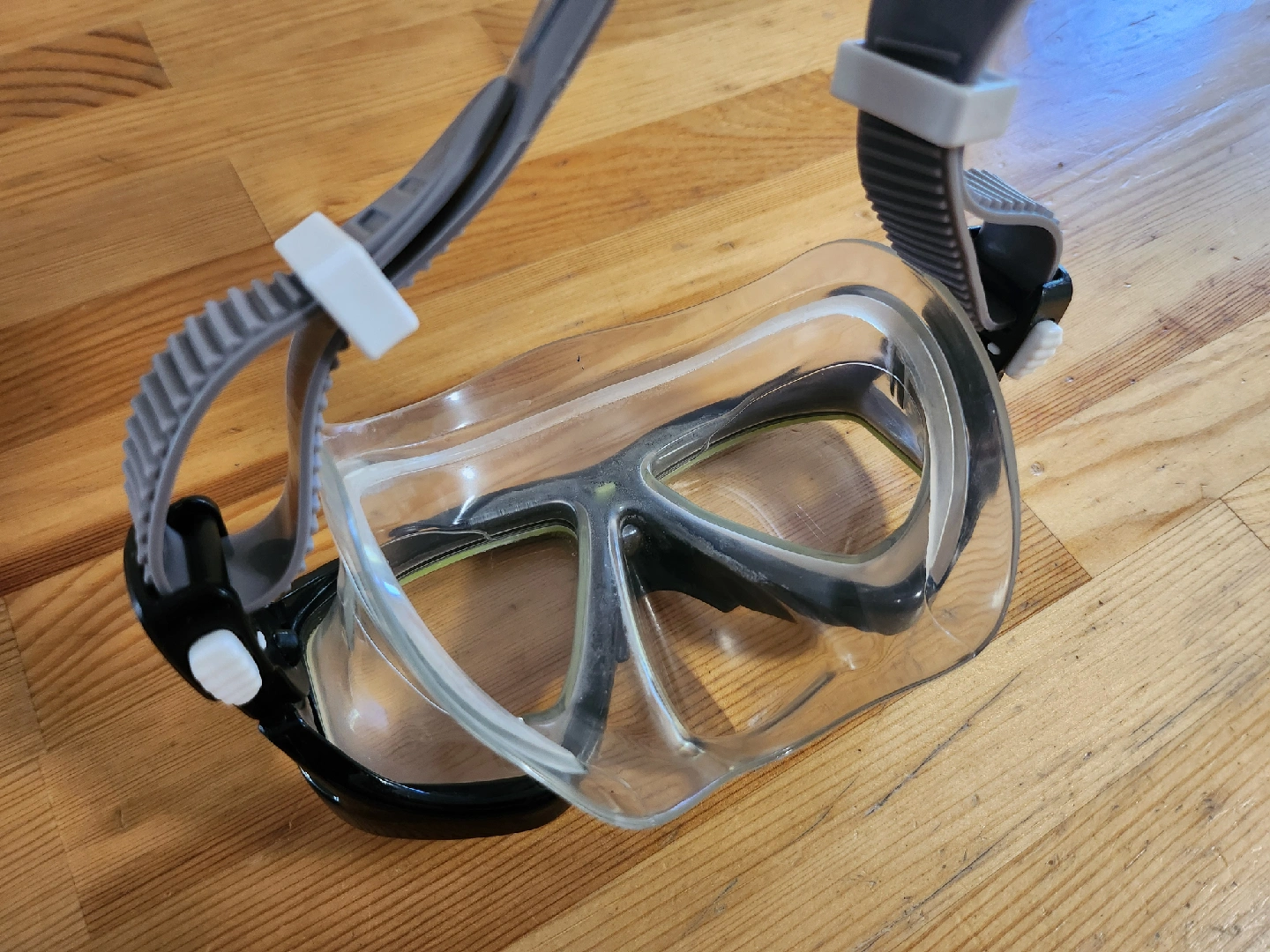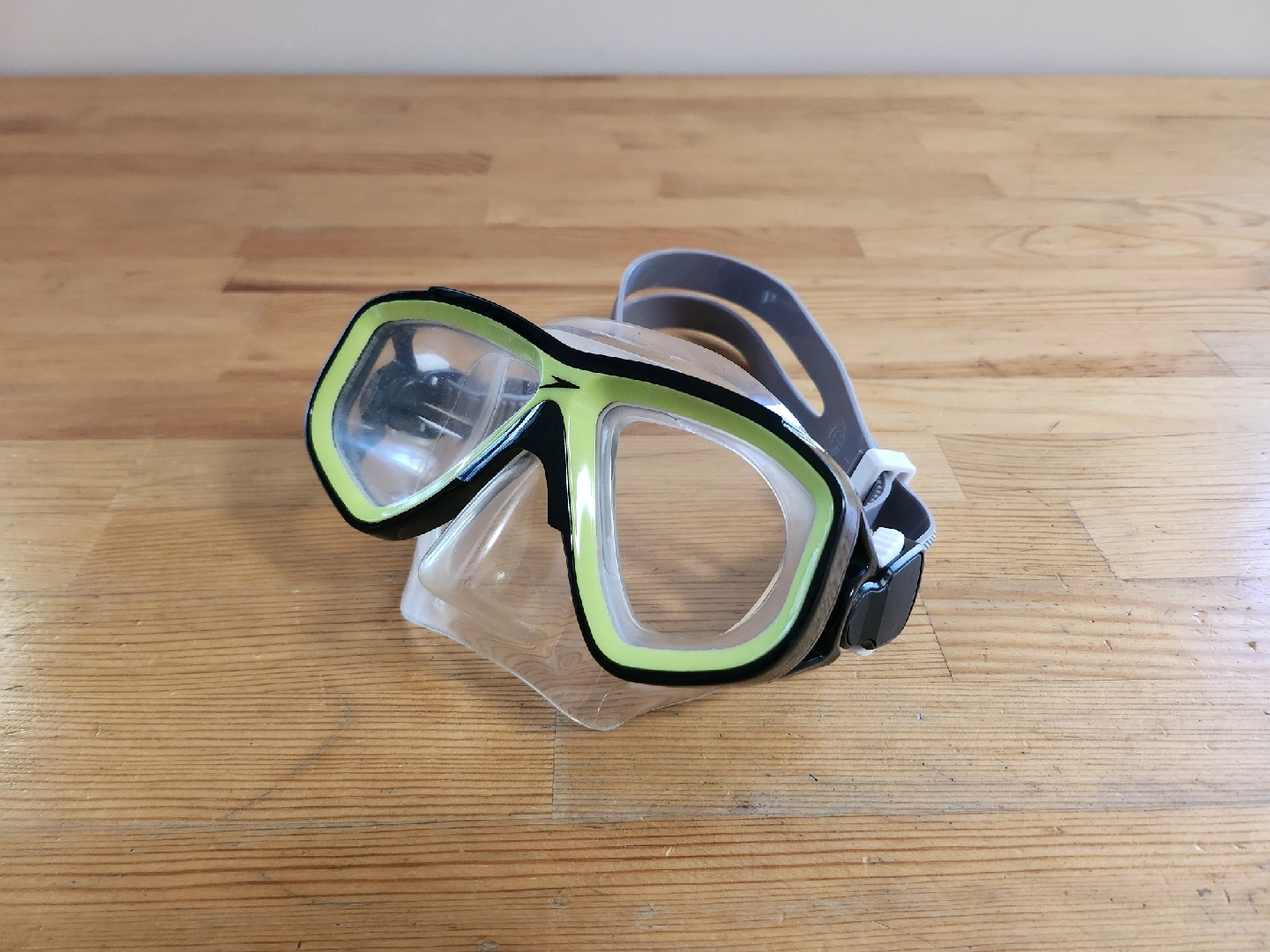 Kid's Speedo Dive mask. Features a duel-pinch button design to loosen the rubber strap system. It's in great shape and ready for your next underwater adventure!