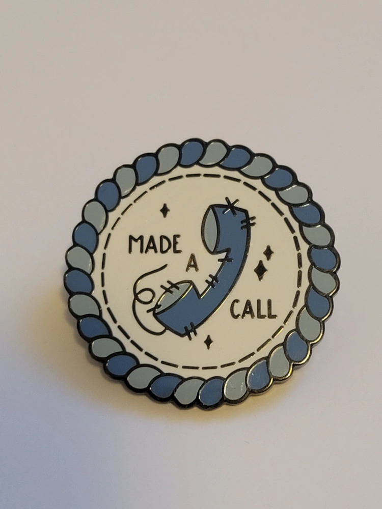 Cute enamel pin from Mia Mouz! It features a blue telephone design with the words 'Made a Call'. Great for adding a touch of whimsy to your bag or jacket. Open to negotiating the price; please reach out. Thank you for taking a look at my listing! Have a wonderful day.