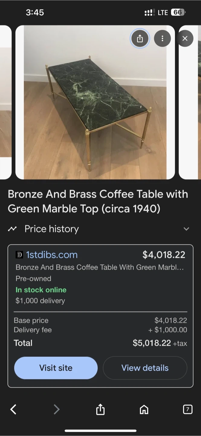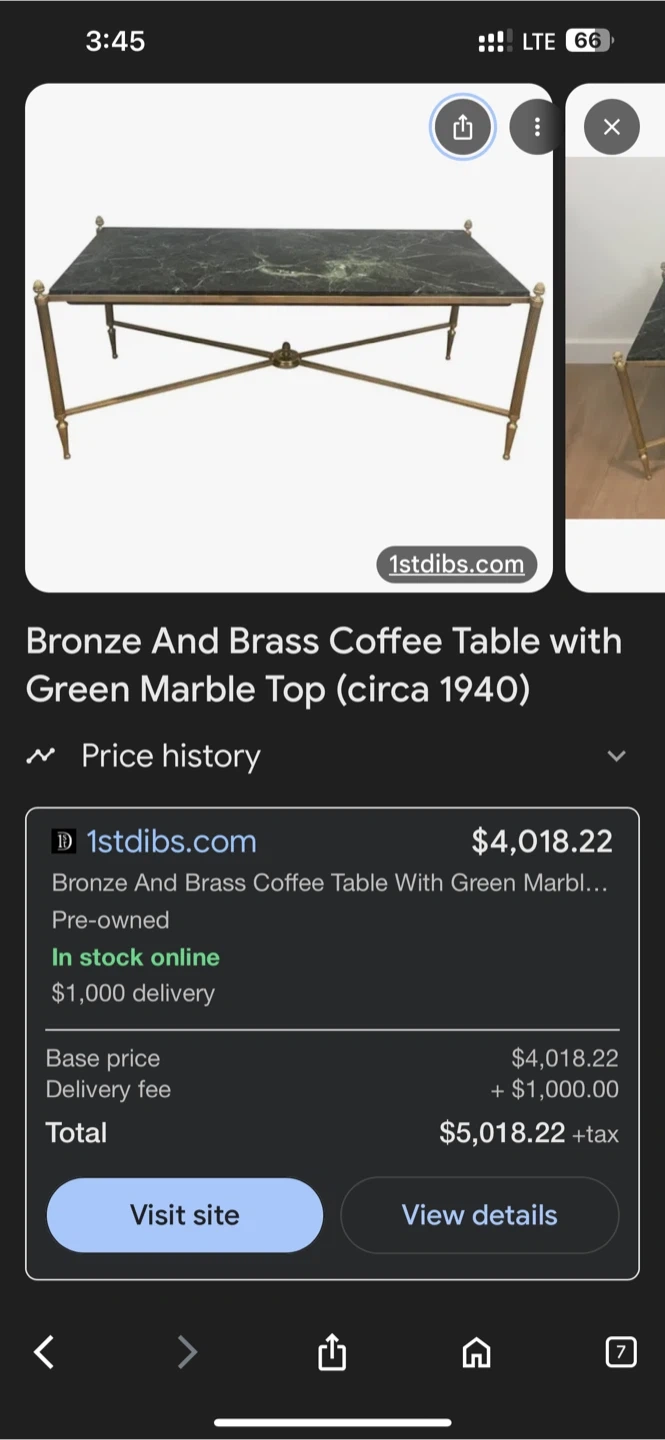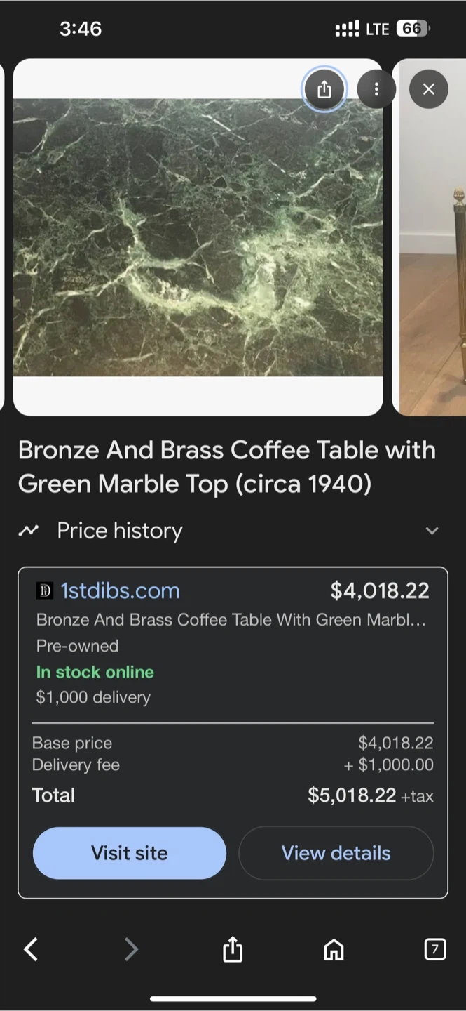 Selling a pre-owned bronze and brass coffee table with a green genuine marble top! It's a unique piece that would look great in any living room. The table is in great condition and ready for a new home from Circa 1940.