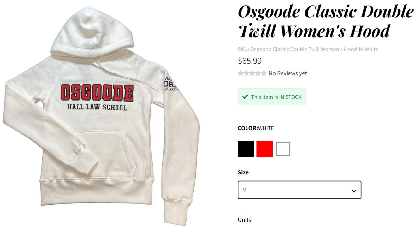 York University - Osgoode Women's Hoodie, Size: M - NEW