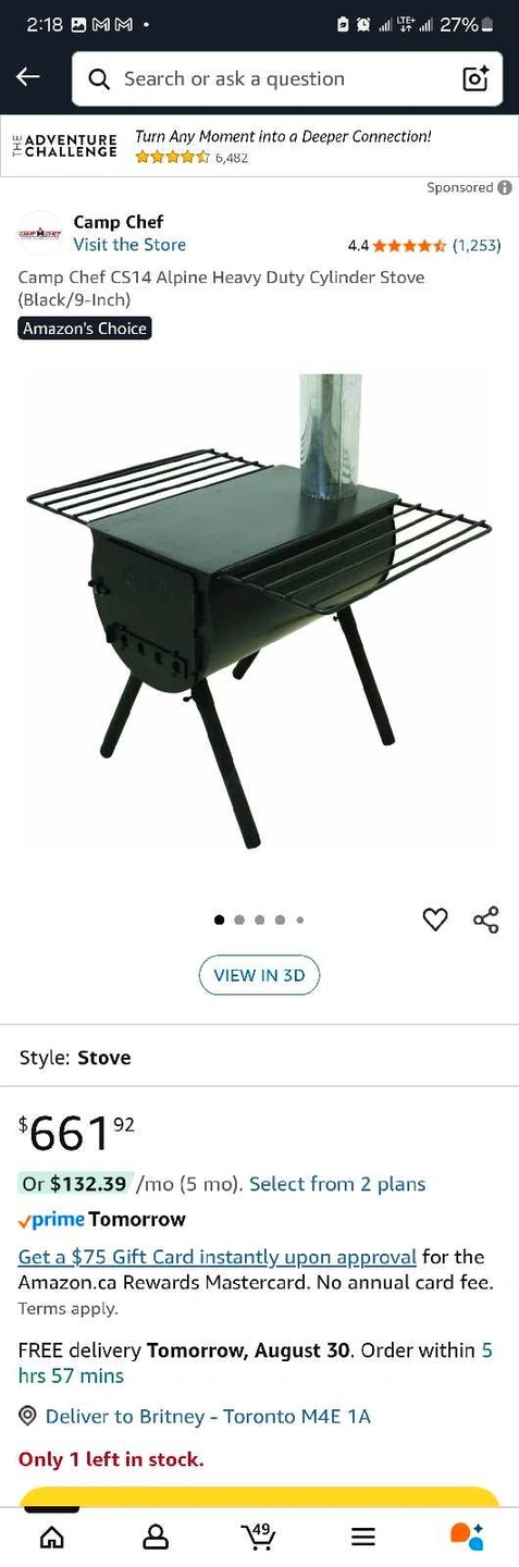 I'm offering a brand new Alpine Heavy Duty Cylinder Stove, still in its original packaging. This robust stove is perfect for outdoor cooking and heating, featuring a durable construction and a hot water tank for added convenience. Never been used and ready for your next adventure! $500 obo