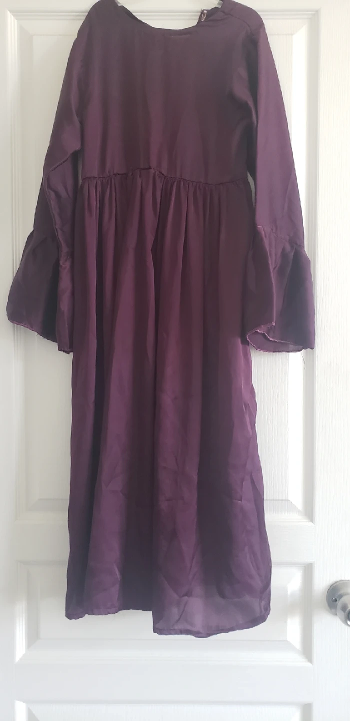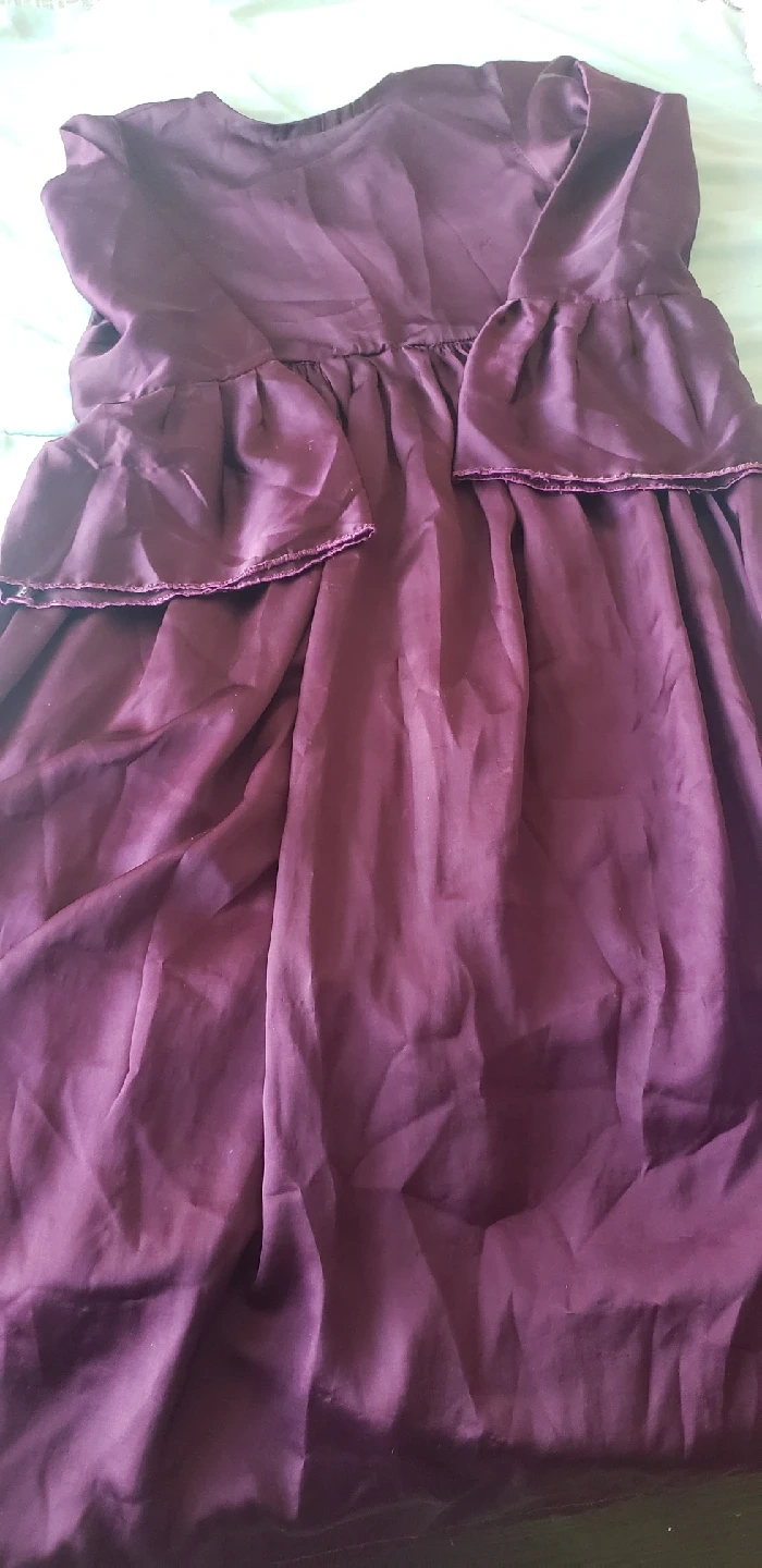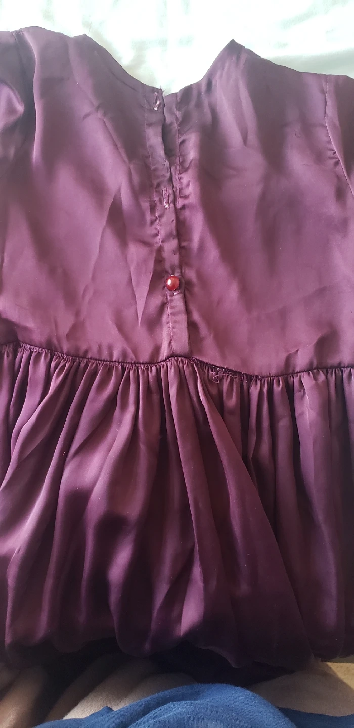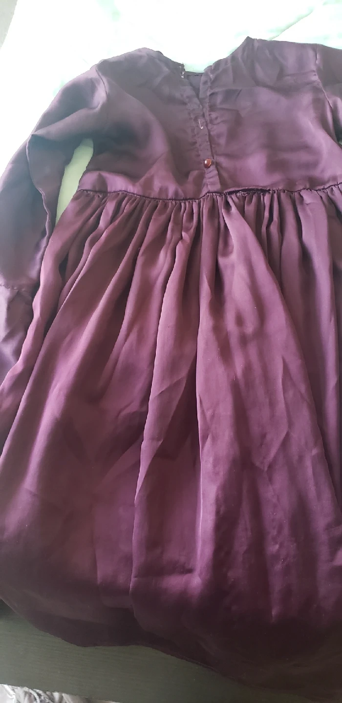 Selling a silken long sleeve dress. It features a button closure at the back and a gathered waist. Perfect for a casual or semi-formal occasion!