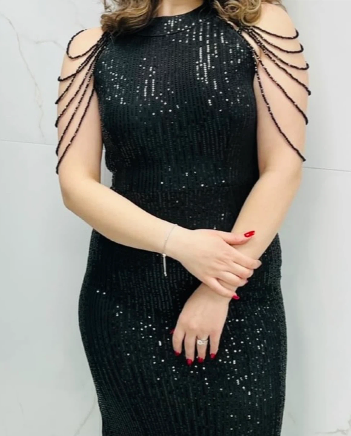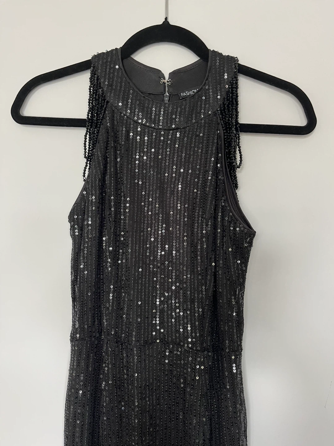 Selling this black sequence dress in very good condition Has layers of beads that lay on each shoulder Size Small Pickup Hamilton Mountain Rymal & Upper Gage Message me for delivery inquiries Cash only Checkout my other listings for more great deals!!