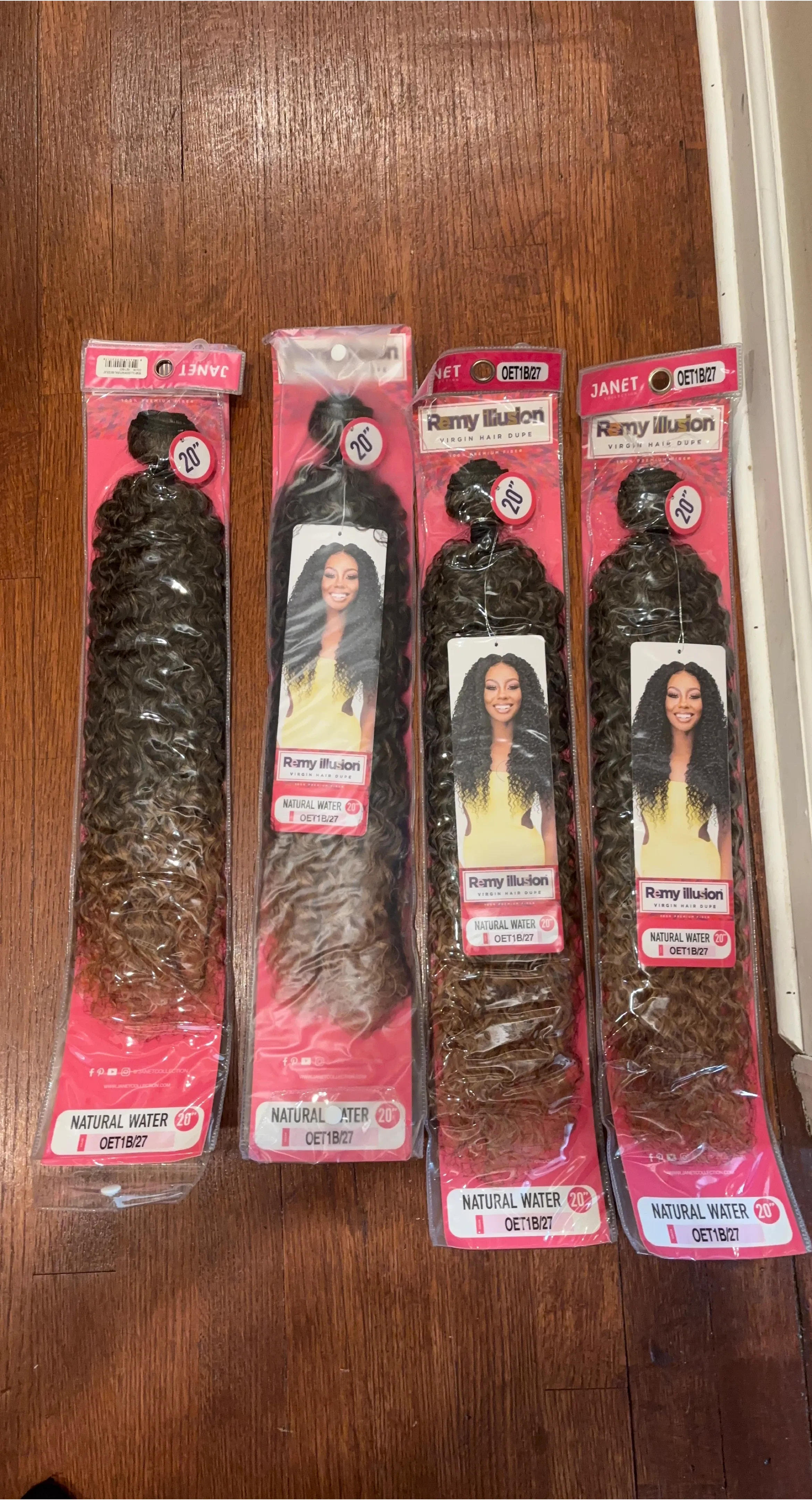 I have Janet Remy Illusion Virgin Hair Dupe - Natural Water 20 inch hair extensions. The color is OET1B/27. Perfect for adding length and volume to your hair