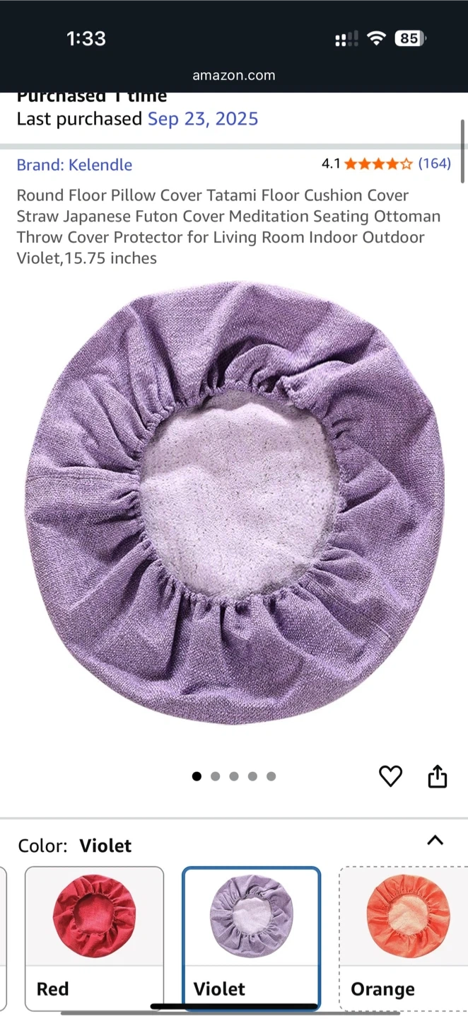 Colors available: Skyblue, gray, light purple, dark purple I am selling round meditation foam cushion with new cover that i bought from Amazon. Cover+foam for $20 each, and $10 for just the foam. https://www.amazon.com/Kelendle-Cushion-Japanese-Meditation-Protector/dp/B08FMLNT36 Cover is currently sold for $11.5+tax1=12.5 and it is new ordered today. https://www.amazon.com/GoTo-Foam-Diameter-Upholstery-Cushion/dp/B07X8G56WG Foam was bought last year and same size foam is sold for $24.84+tax2.16=$27 on Amazon. Total should be $40, but I am selling this on half price just for the sake of moving out.