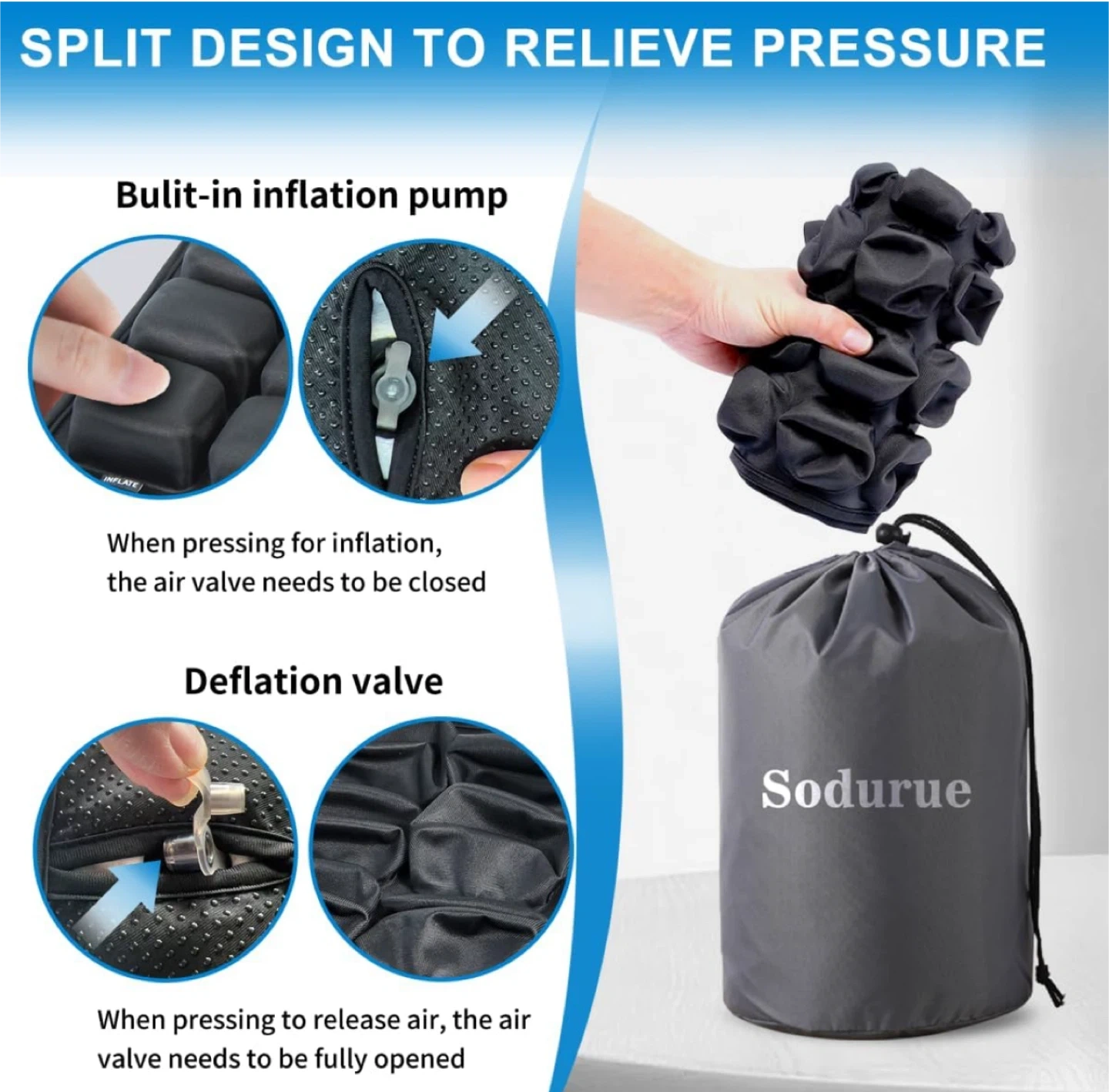 Travel Cushion Airplane seat,Airplane seat Cushion for Long Flights,Press Type air Inflatable Wheelchair seat Cushion,49 airbags,for Car,Office,Stadium,Ergonomic Comfort Support,Heavy Duty