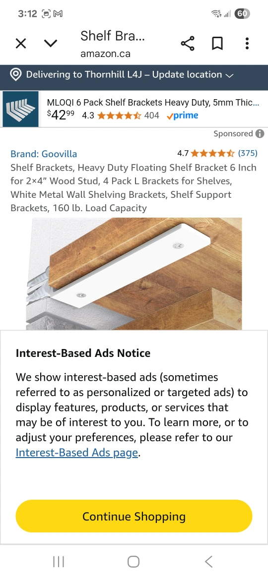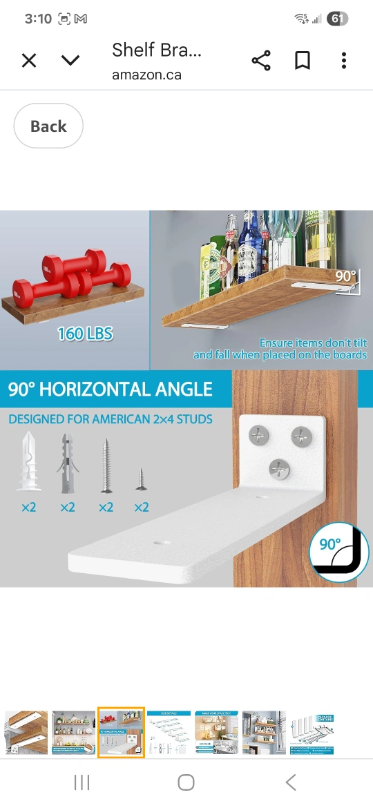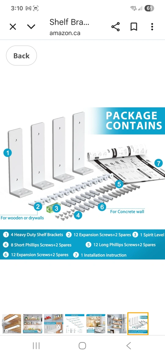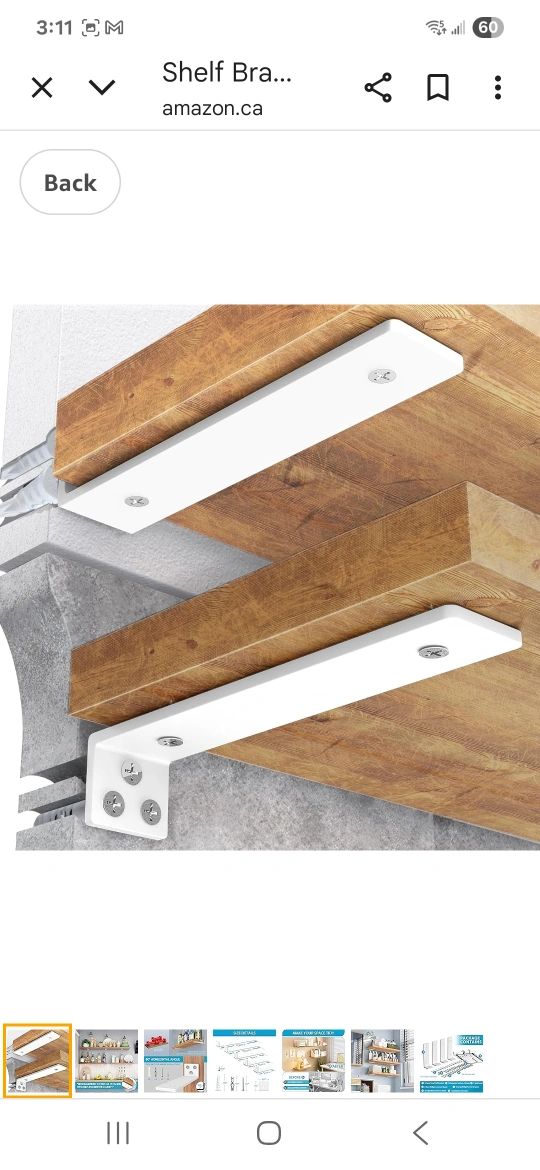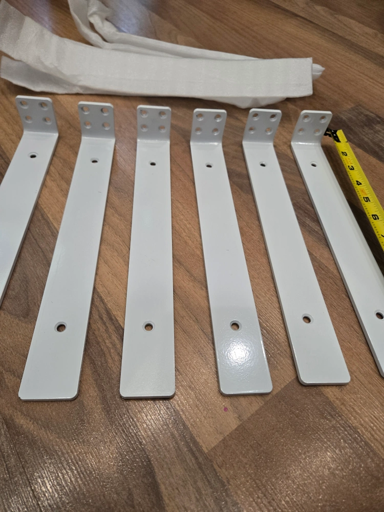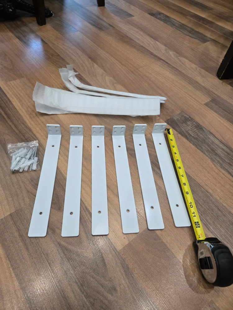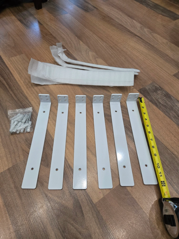 Selling a set of 6 brand new white shelf brackets! They look to be in perfect condition and come with screws and wall anchors. Great for adding some extra storage space to any room