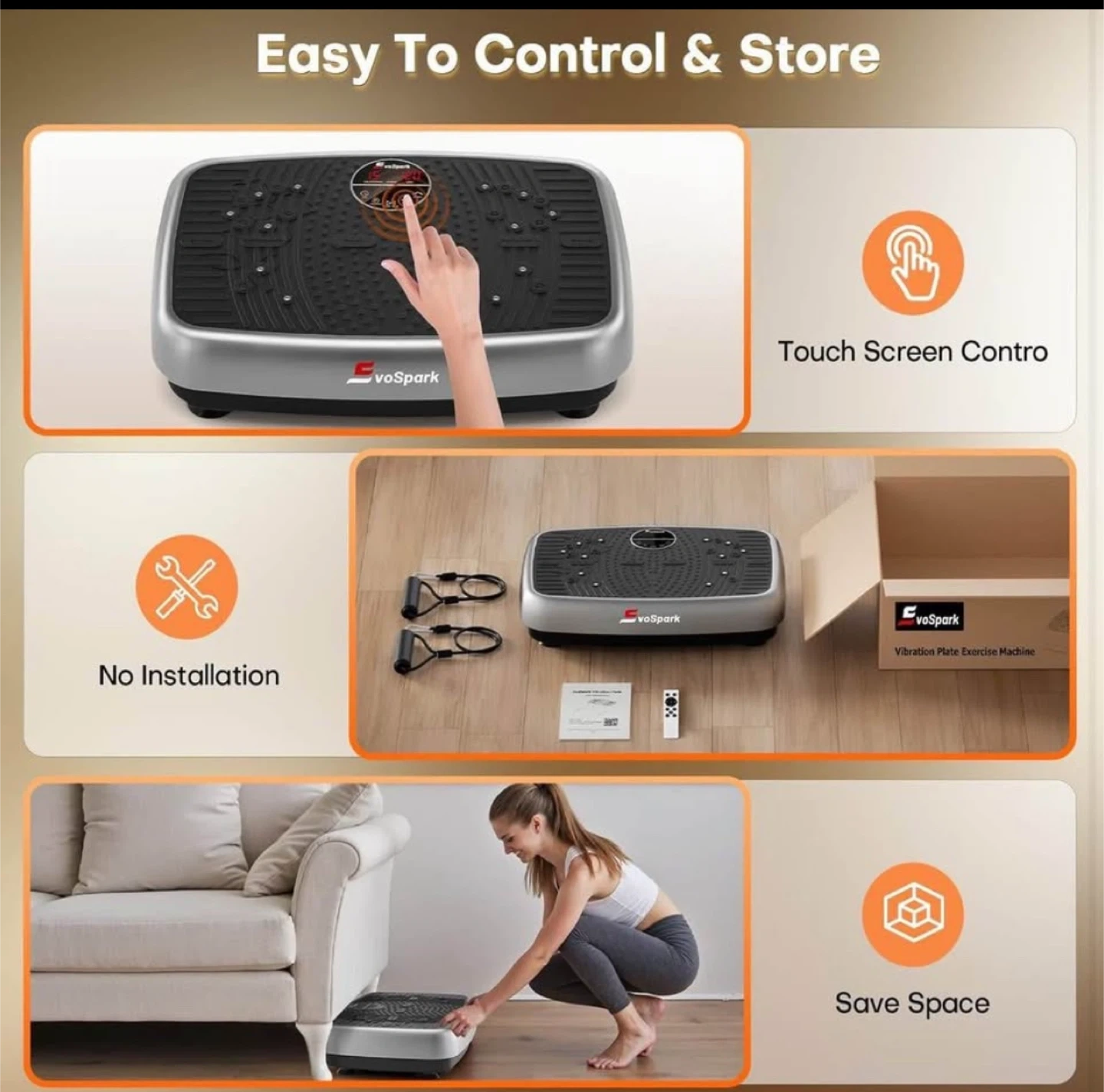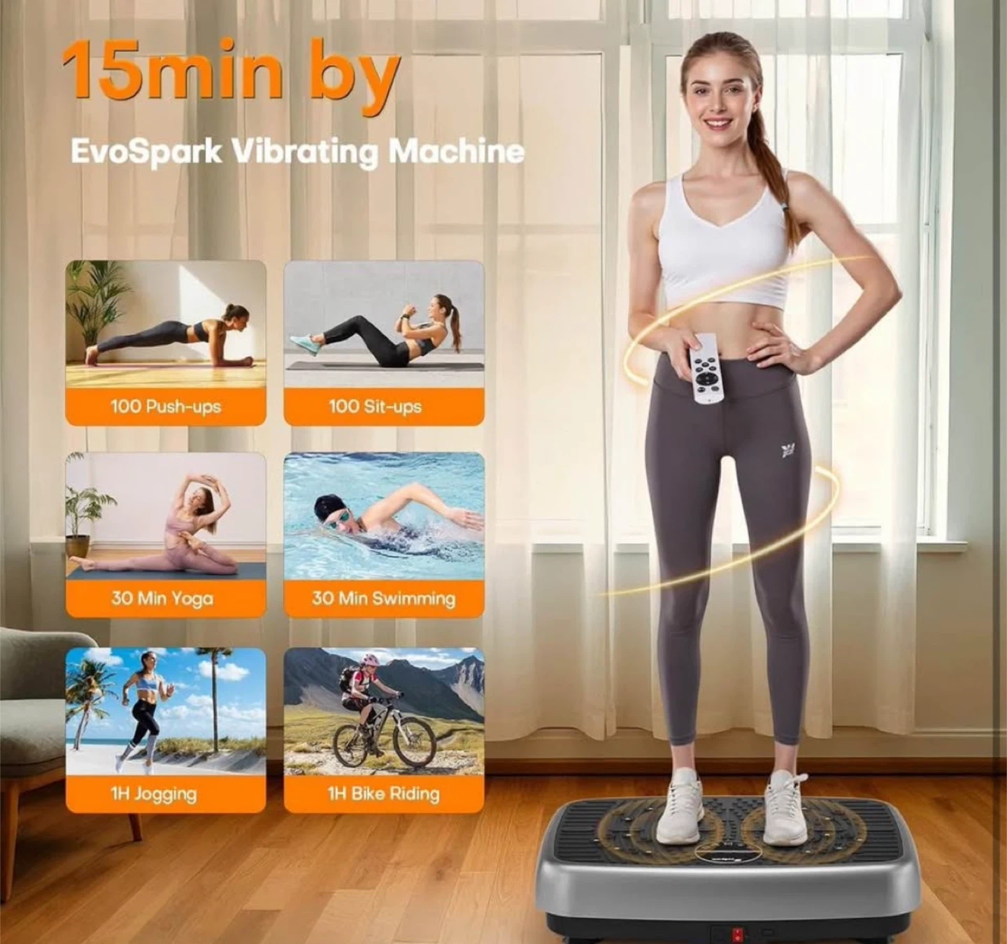 Vibration Plate Exercise Machine, 2025 Upgraded Double Motors Vibration Plate for Lymphatic Drainage, EvoSpark 3D PRO Vibration Plates for Weight Loss,450 Lbs Capacity Vibrate Fitness Platform