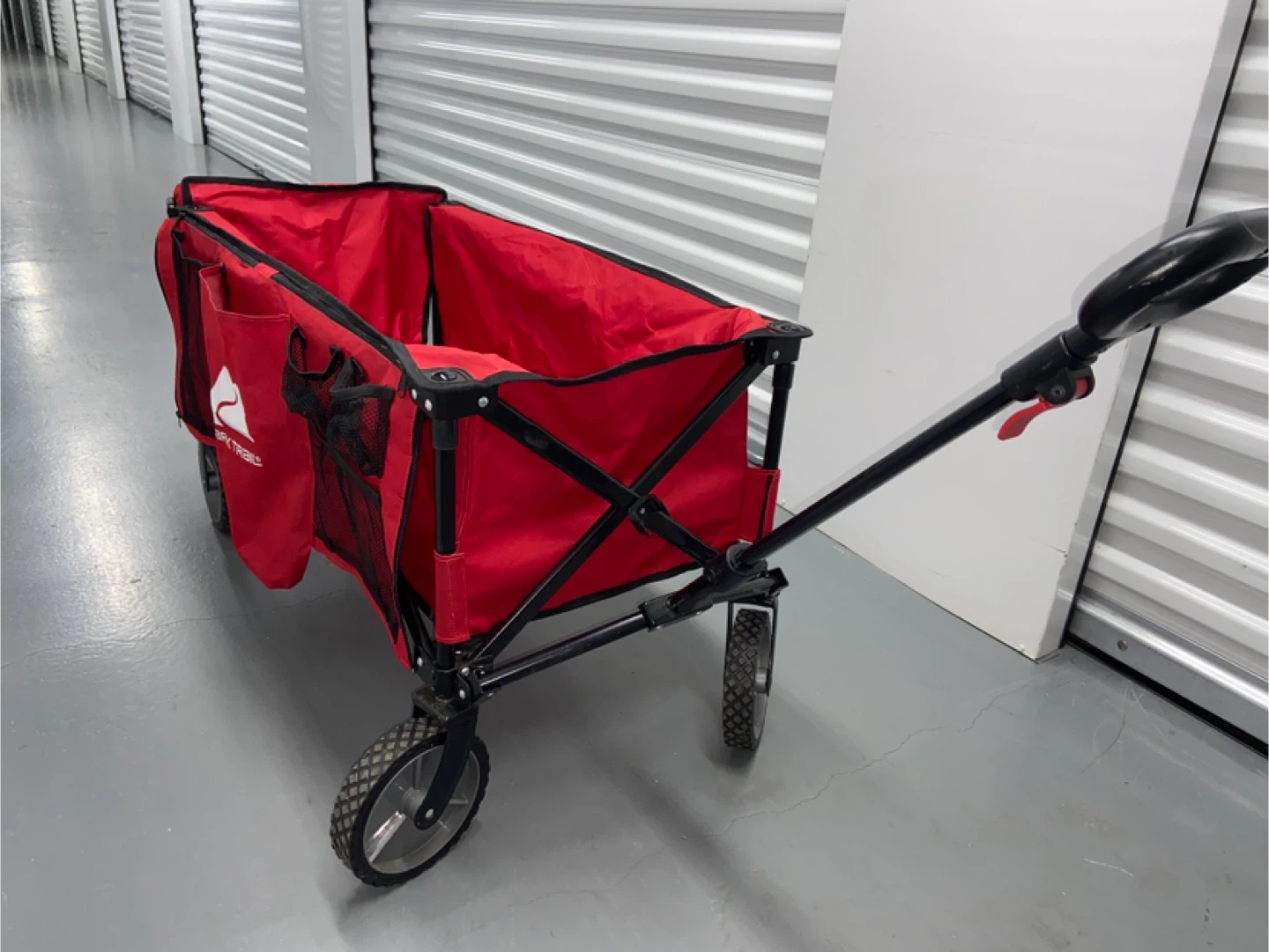 Selling a red Ozark Trail collapsible folding wagon! It's in great shape and ready for your next adventure. Perfect for hauling groceries, camping gear, or anything else you need to move around easily. The wagon folds up for convenient storage and transport