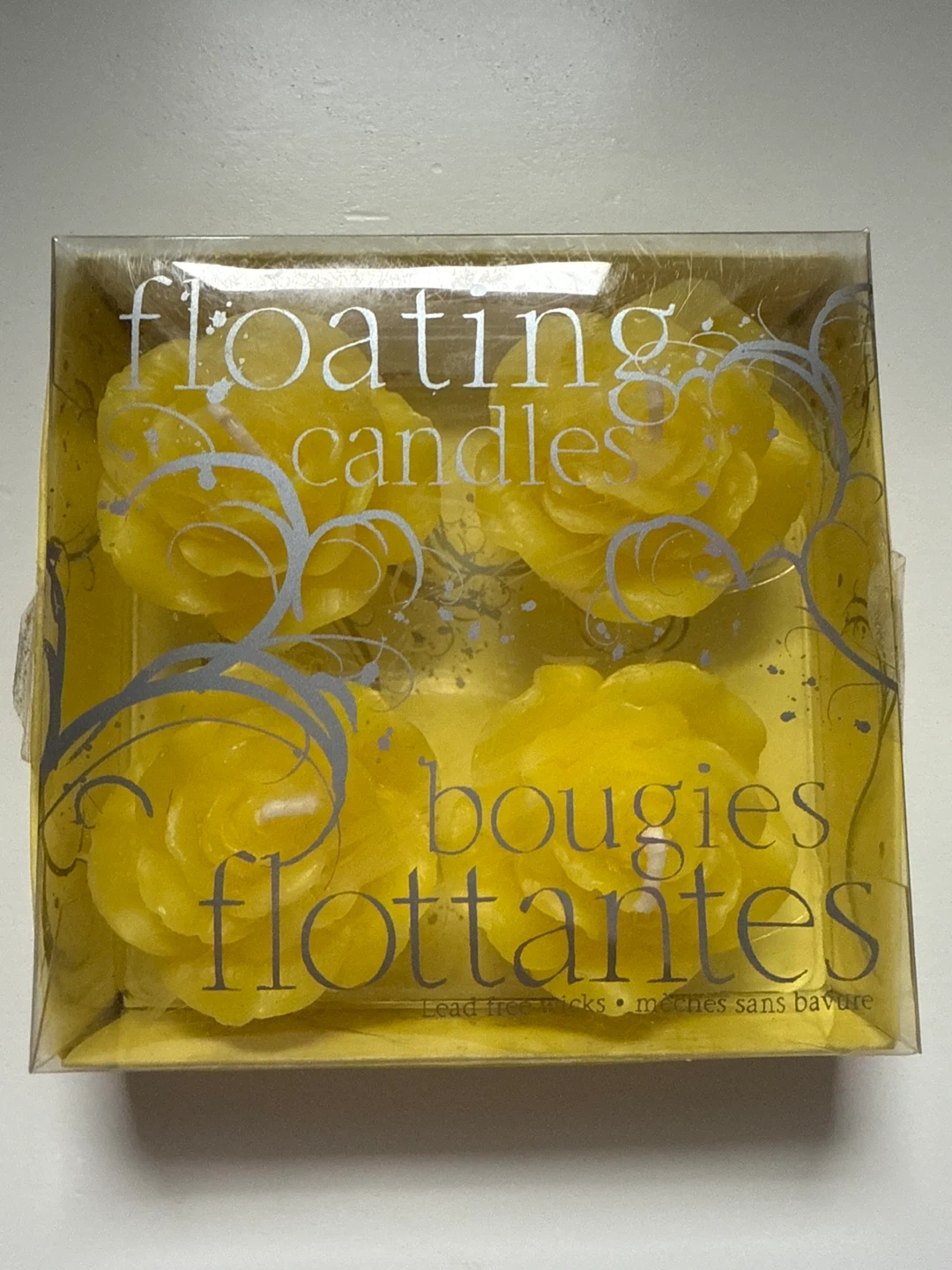 Free set of floating candles shaped like yellow roses! They come in their original packaging. Perfect for adding a touch of elegance to your bath or any water feature.