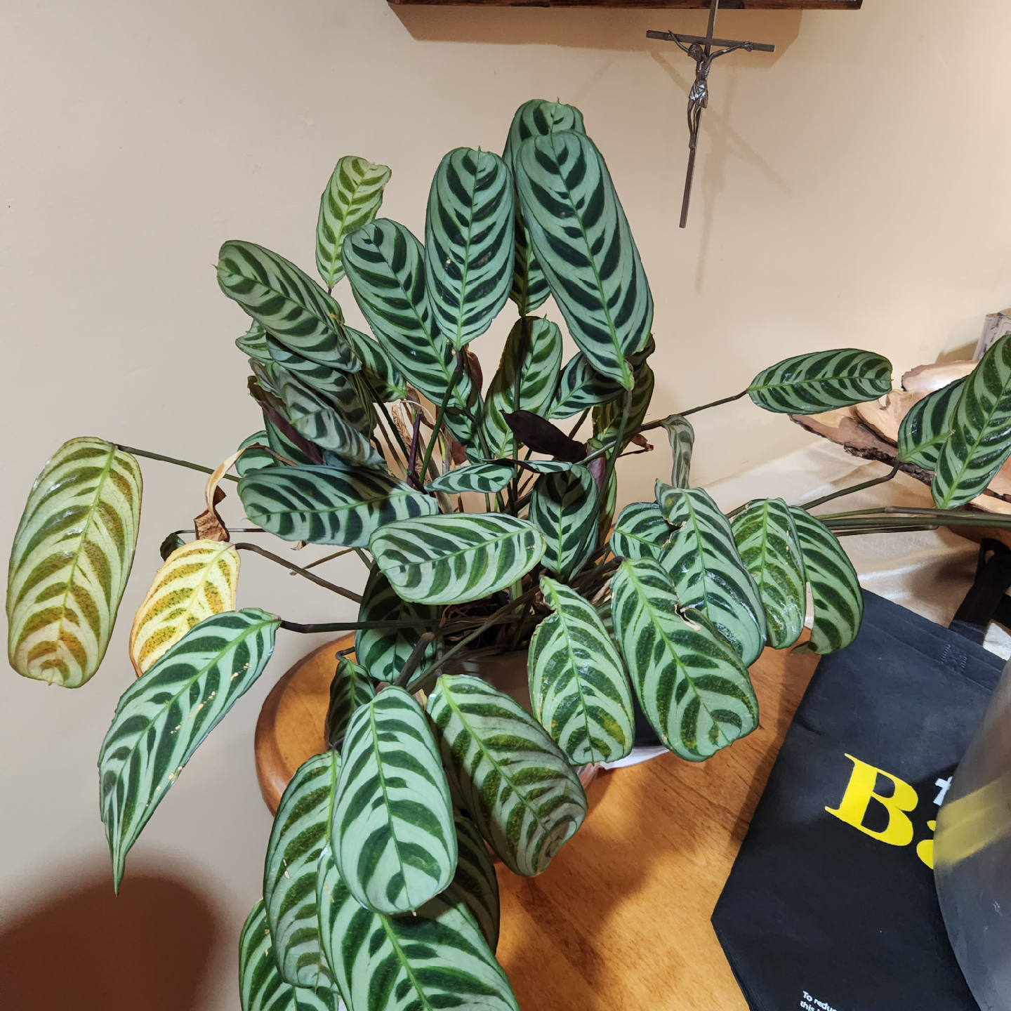 Selling a Calathea Zebrina plant! It's a beautiful houseplant with striking zebra-like stripes on its leaves. This plant is perfect for adding a touch of greenery and elegance to any room. It's in great condition and ready to brighten up your home! It purifies the air indirect sunlight.