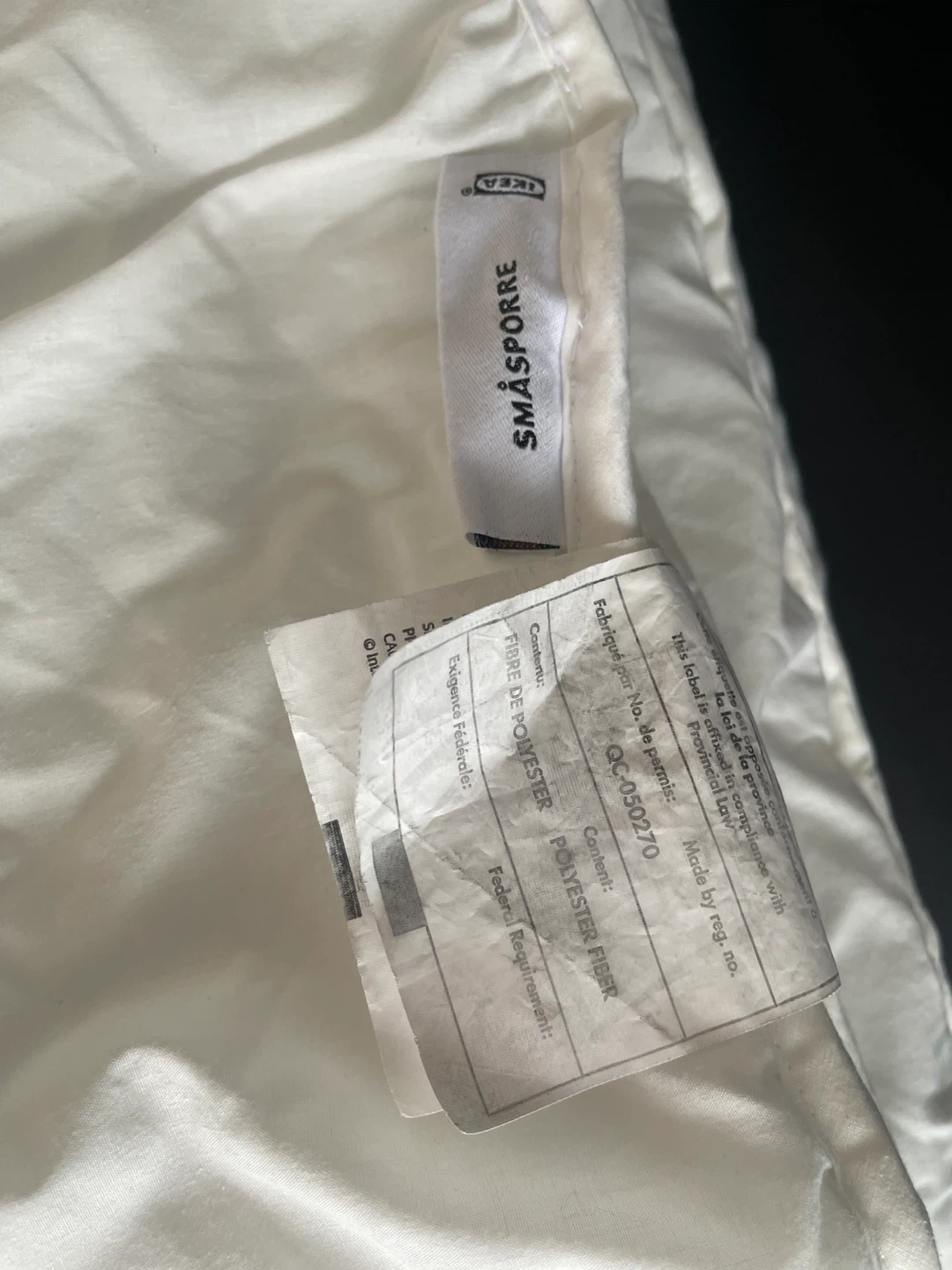 Selling an IKEA SMÅSPORRE quilt. It's white and made of polyester fibre. Perfect for adding a layer of warmth to your bed!