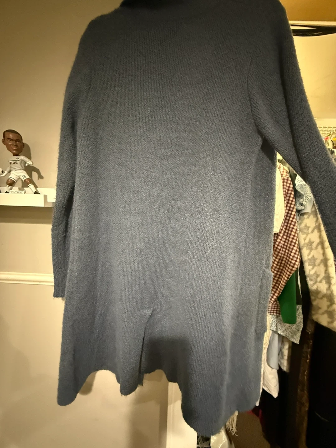 Selling a cozy Lane Love Tree cardigan in size medium! It's a lovely blue color and features a button-down style with pockets. Perfect for layering!