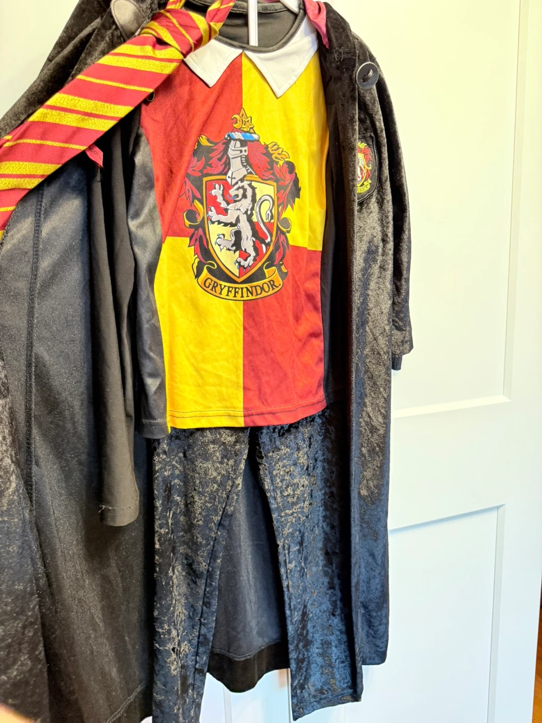 Selling a Harry Potter Gryffindor robe costume set! The set includes the robe, shirt, tie, and pants. Perfect for any young Harry Potter fan!Worn, in a good condition.