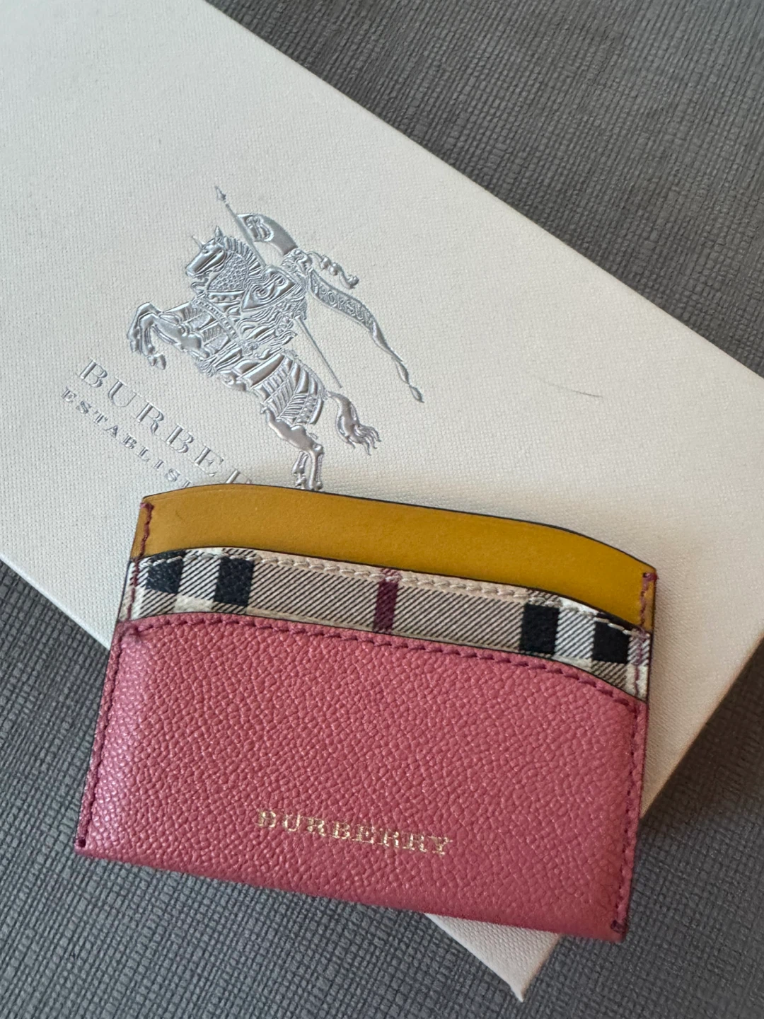 Selling a Burberry card holder in a lovely pink and yellow colour combination! It's in great condition and comes with its original box. Perfect for keeping your cards organized in style