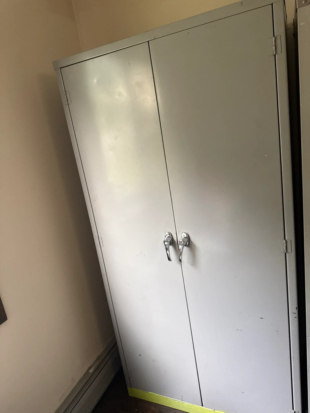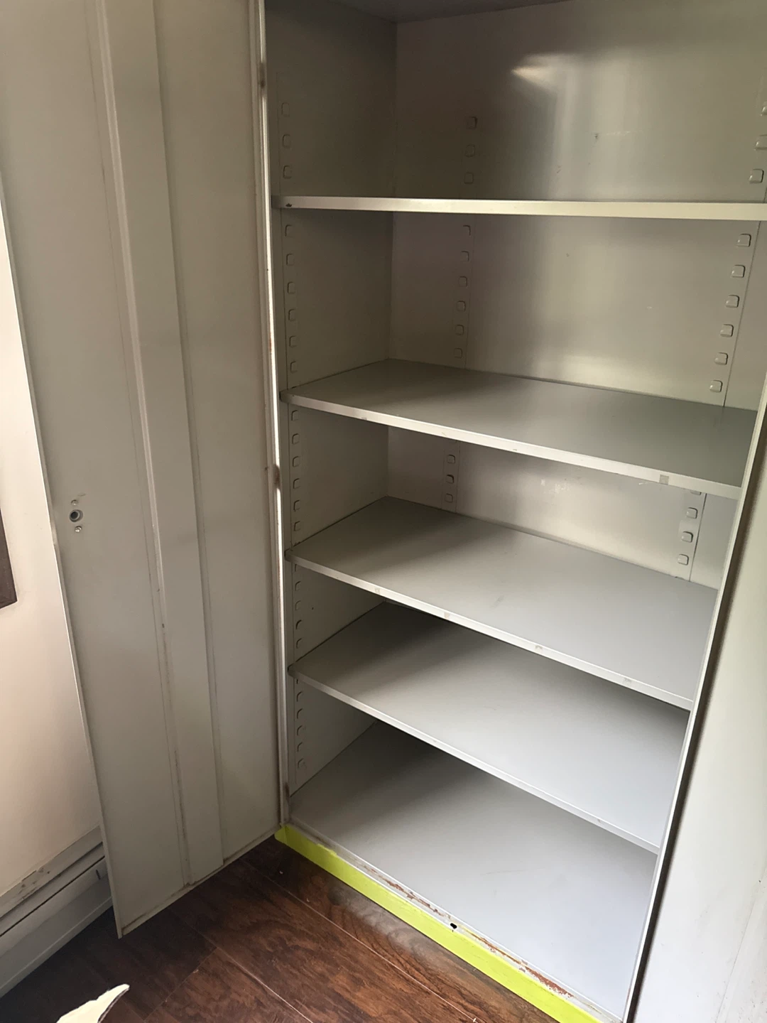 Selling a metal storage cabinet. It has multiple shelves for organization. Perfect for a garage, basement, or office for storing various items. Good condition! It very heavy we got it delivered and made from India