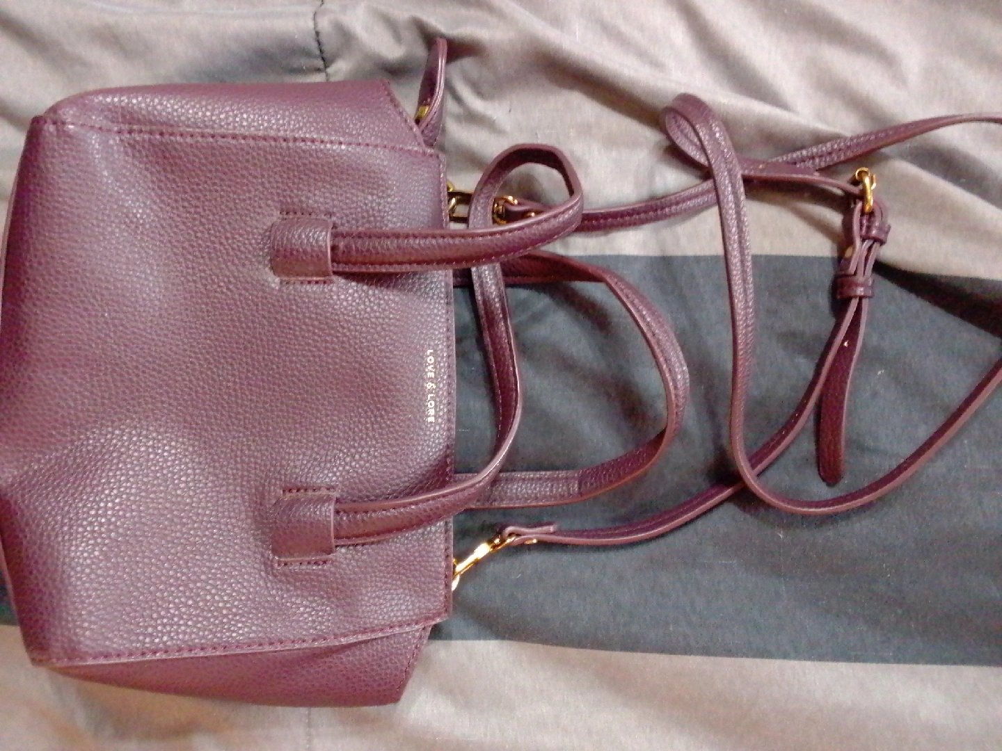 Selling a cute Love & Lore crossbody bag! It's in great condition and perfect for everyday use. The colour is a lovely purple, and it has a nice texture. It's a stylish and practical accessory to complete any outfit