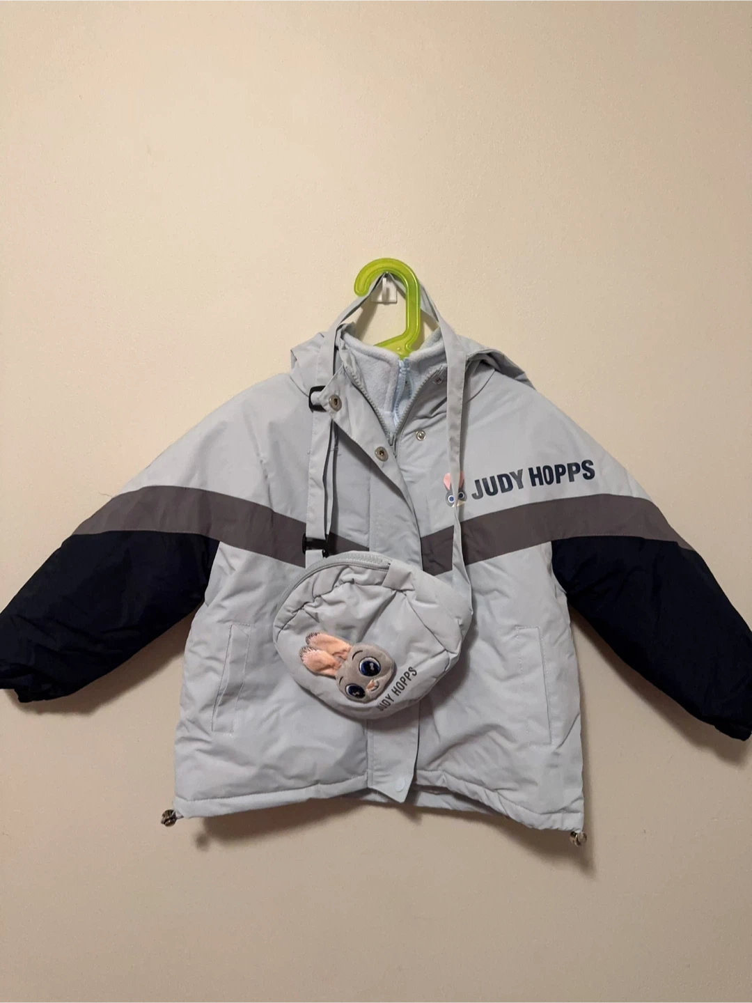 Selling a cute Judy Hopps themed jacket and purse set! The jacket features a hood with bunny ears and the purse has a Judy Hopps face on it. Perfect for any Zootopia fan!